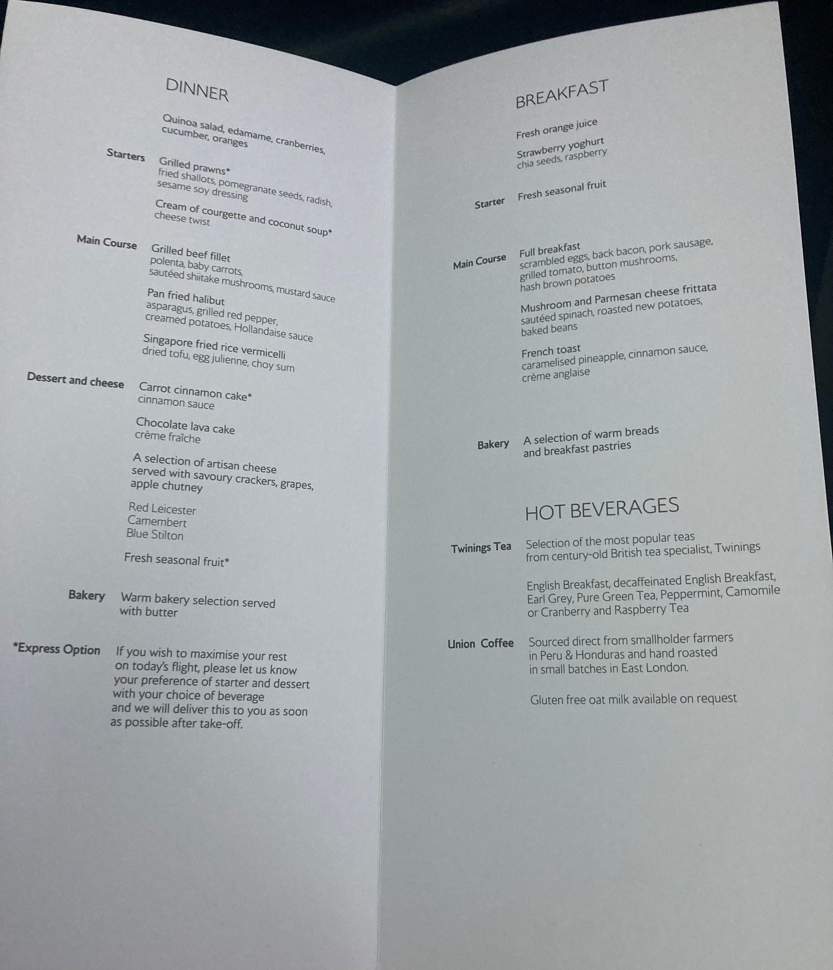 Someone was asking about this route the other day so here is the menu from last nights flight.