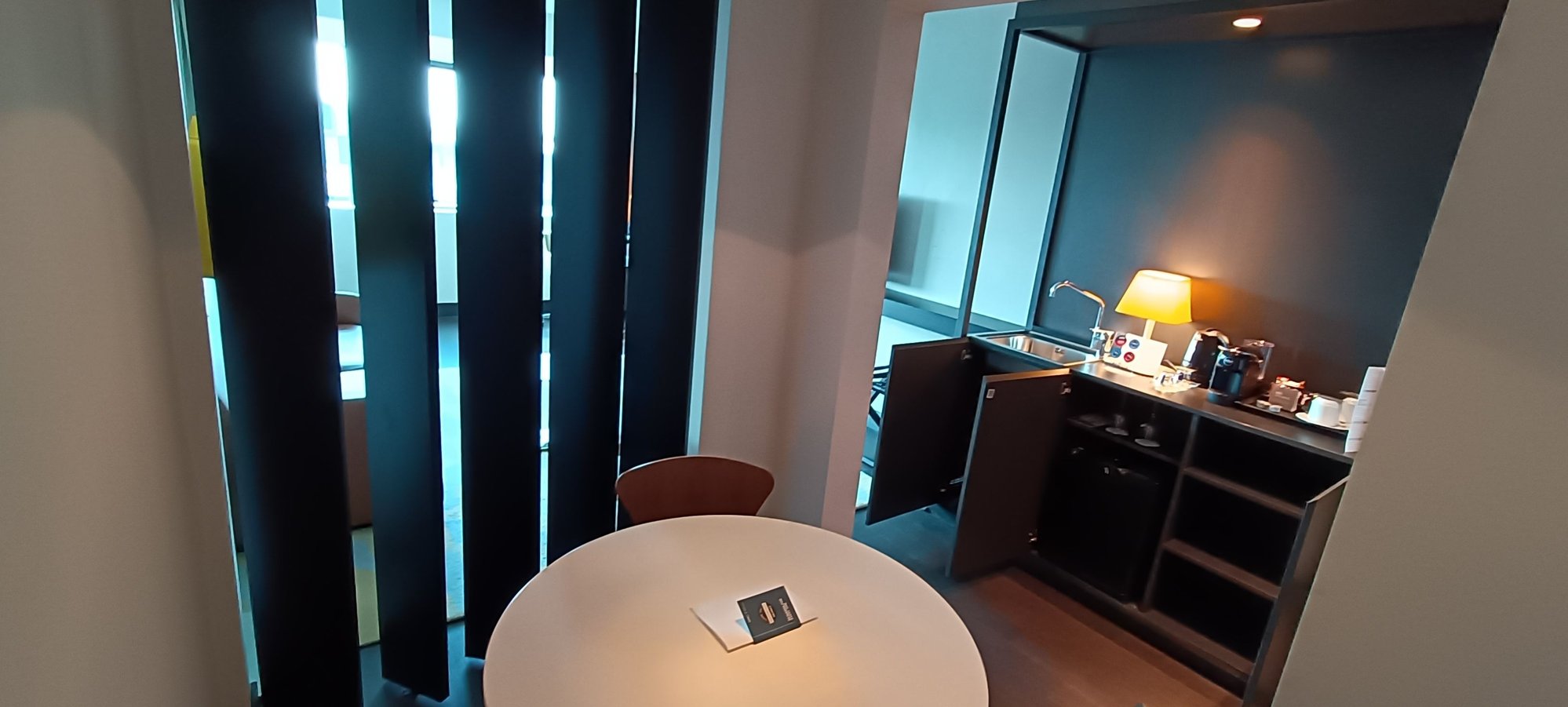 The hotel is a long thin building with the suites at the ends of the corridors, necessitating a long walk from the lifts past all other rooms. The key card is like a bank card with a chip, and you insert it into a slot on the wall instead of on the door. The chip is required to activate electricity in the room. I received no further gifts in the room and oddly, the (paid) mini bar was locked.