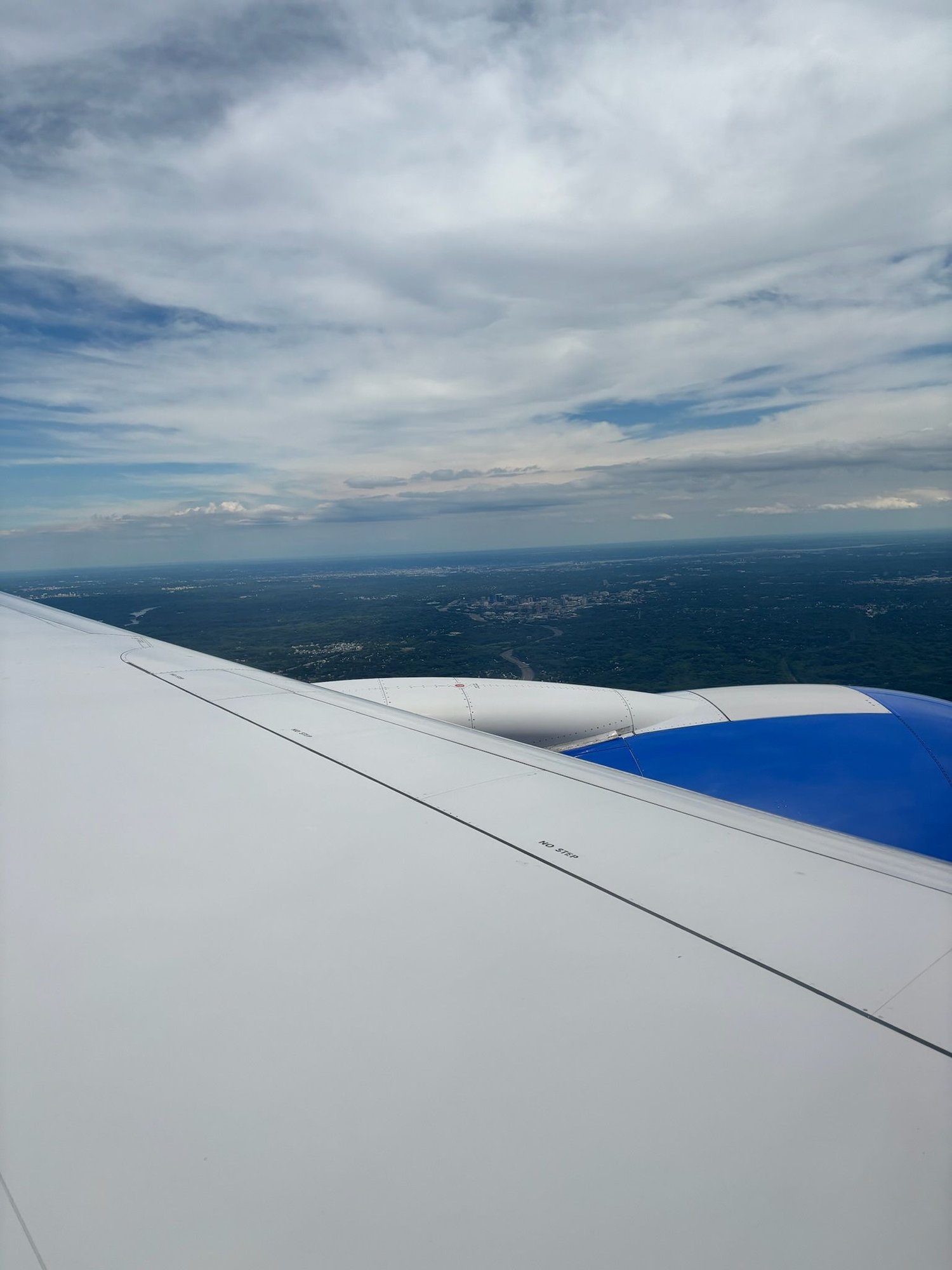 1 hour before landing the crew cleared the breakfast trays and I enjoyed a last bit of looking out the window as we descended into Dulles.