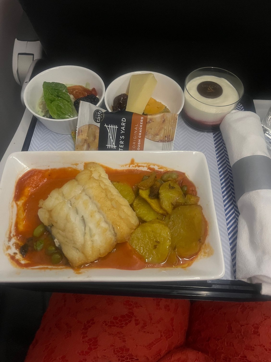 AGP-LHR - cod curry, the sauce is quite nicely spiced.