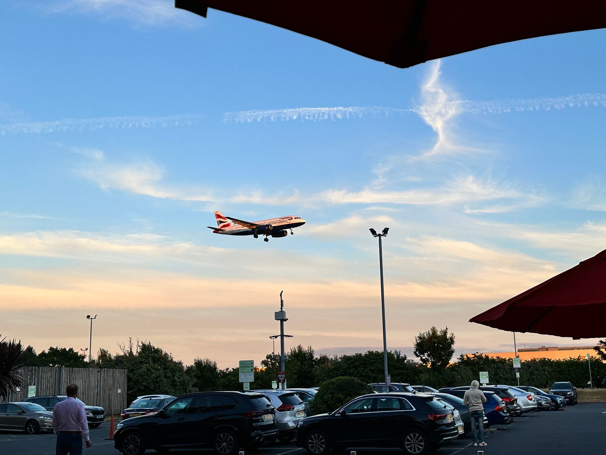 The iPhone camera makes the planes seem quite distant but they are a lot closer than that picture would have you believe . The flight path is immediately behind the hotel with a clear view of the planes coming in.
