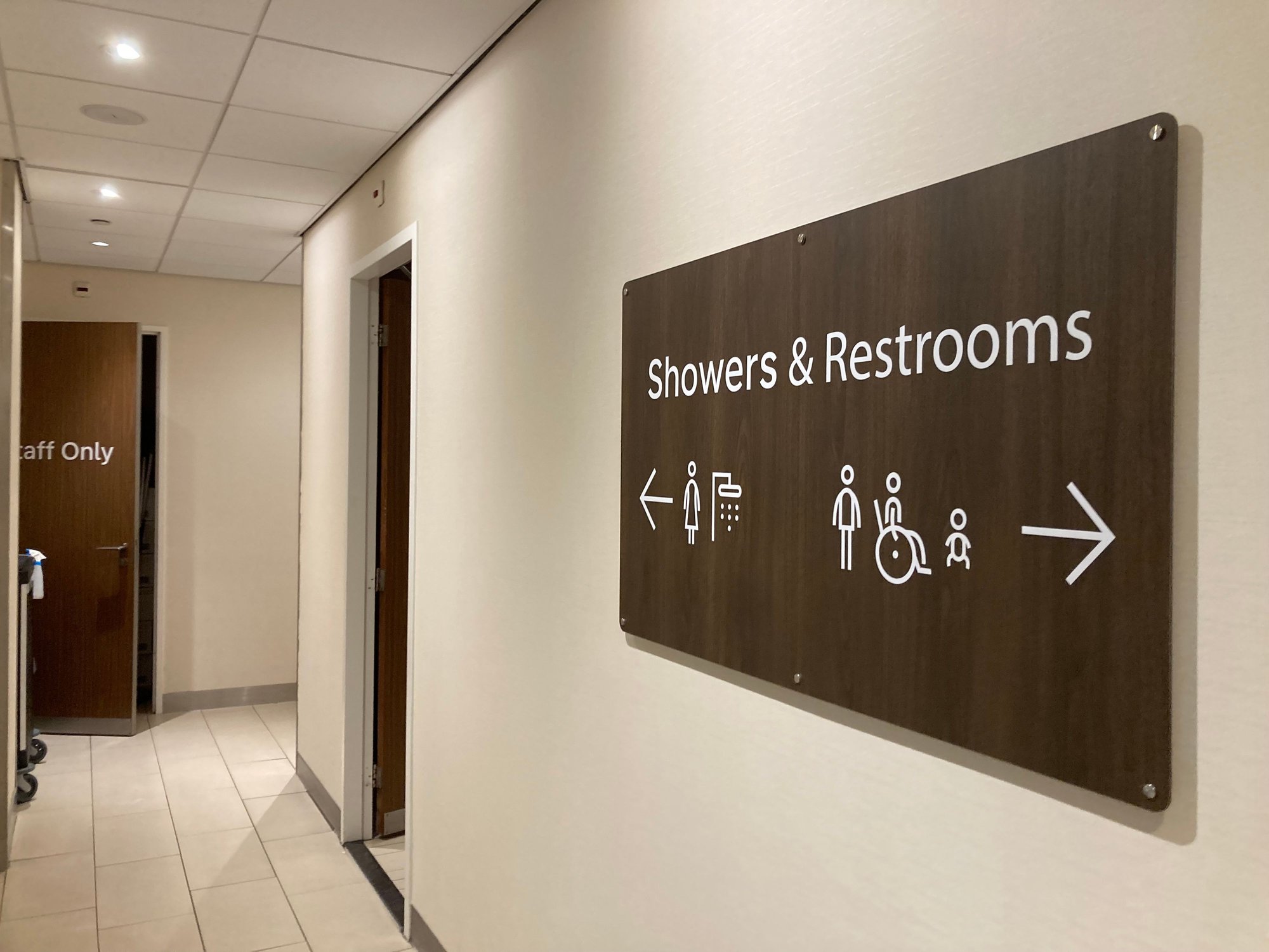 They'll scan your boarding pass and request that when you're done, you'll bring the key back so the next passenger can be granted a shower,
