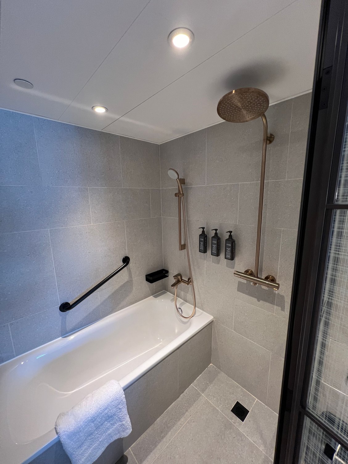 - Standard sized room is quite small, especially in the bathroom with very little moving space