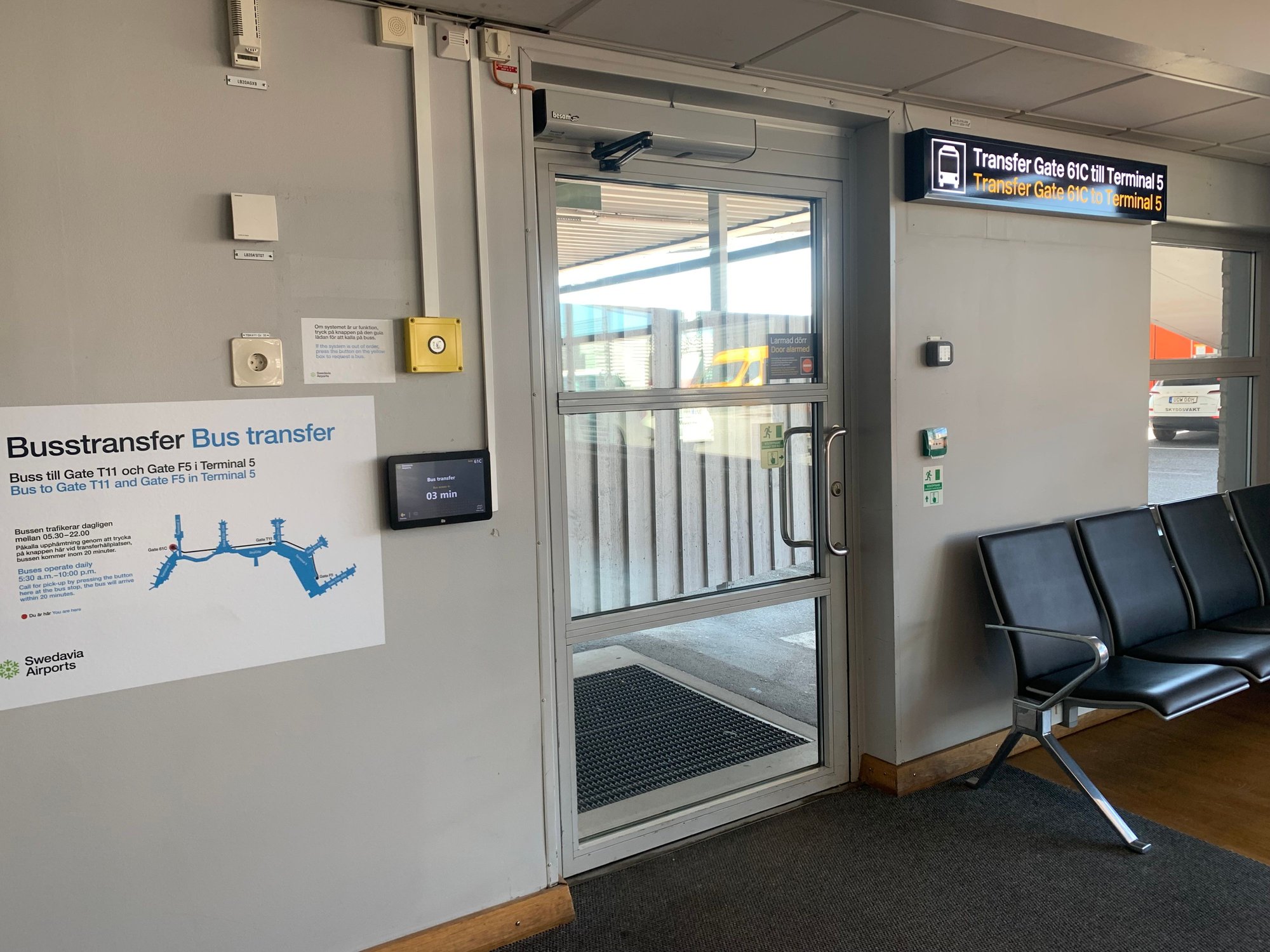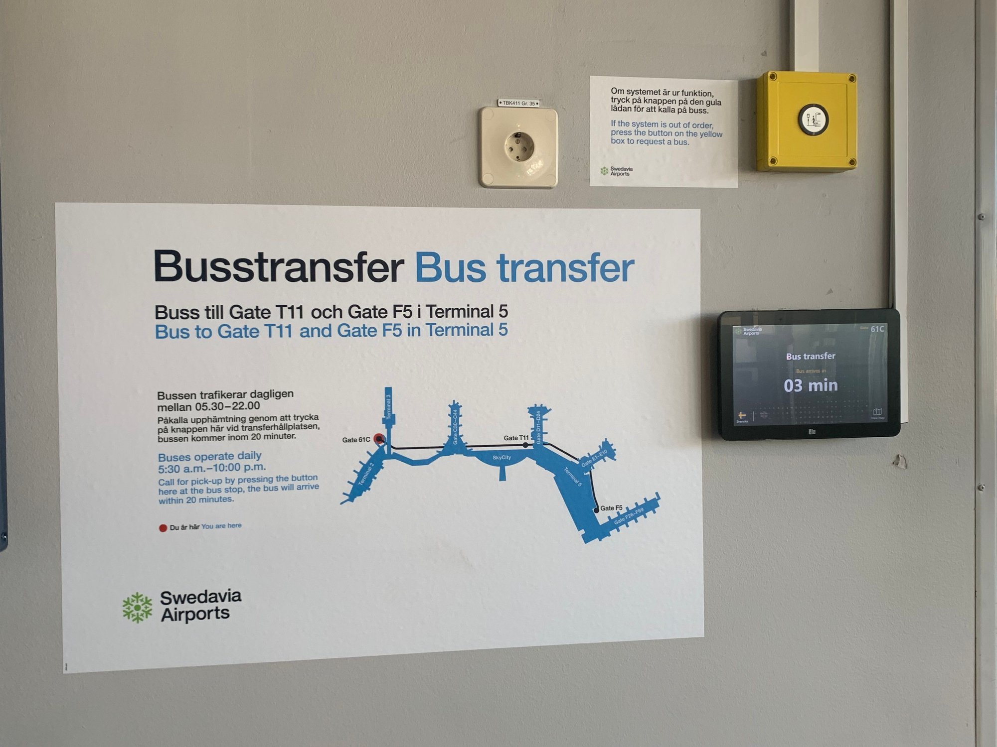 (2) Or summon the bus from T2 - how long is the wait typically for the bus to come, and where will it drop me off in T5, in the Wiki it says “gates T11 and F5” is where the bus leaves from, but I couldn’t find any gate T11 on the Arlanda map.