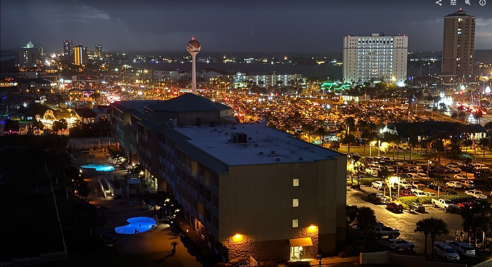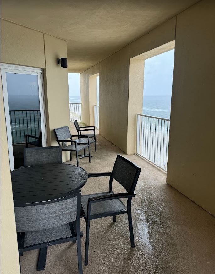 The room was excellent. One bedroom had two bunk beds, a large TV, and a closet. This bedroom had its own full bath, as well. The kitchen area included a full size refrigerator, stove, garbage disposal, washer/dryer, and dishwasher. The dining area had a table for 6. The master bedroom had a king bed, closet, bathroom with shower stall and jetted tub, and his/her vanities. The balcony wrapped around the room allowing 180-degree views up and down the beach.