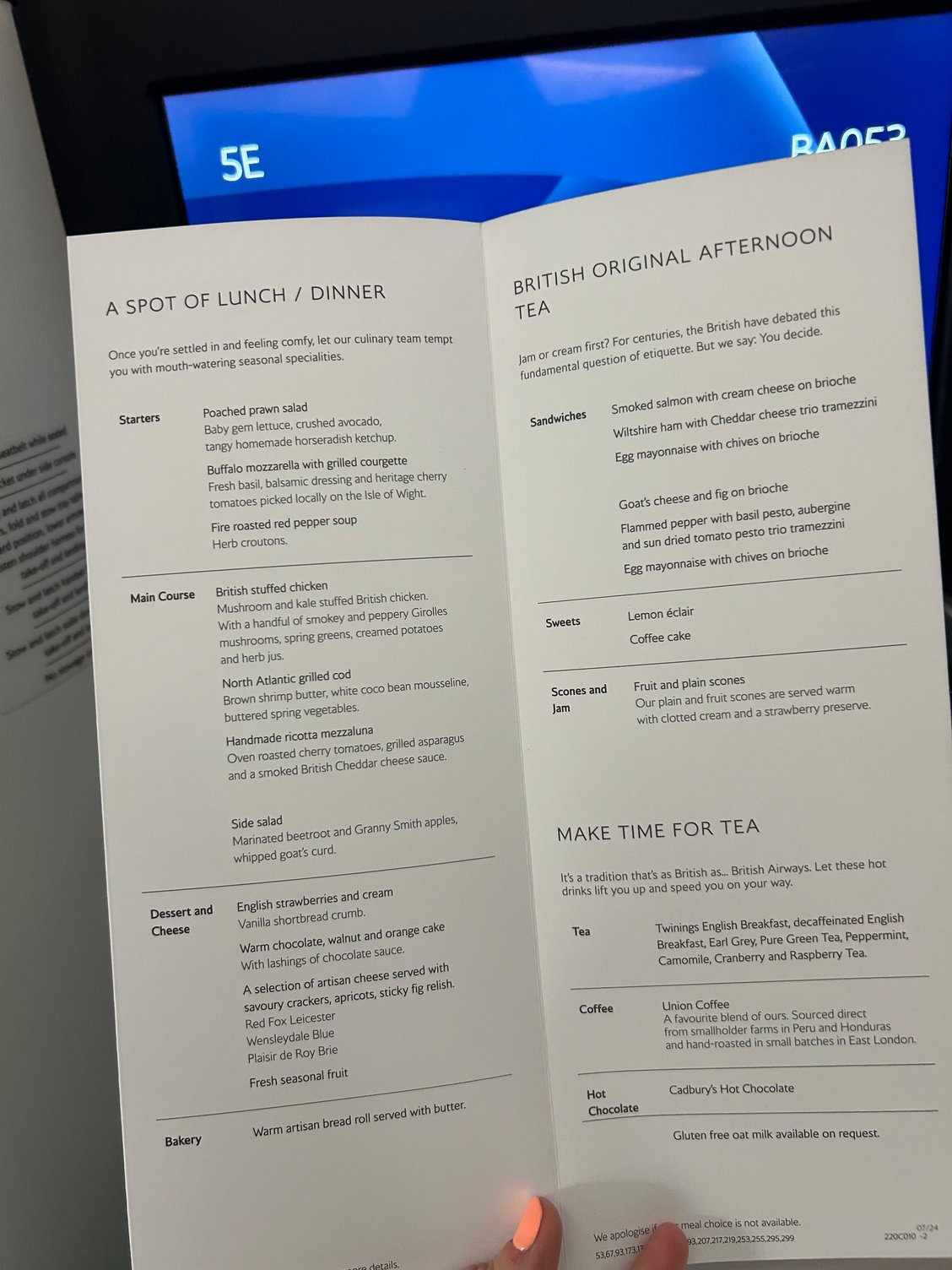 Todays menu for LHR-SEA on BA053