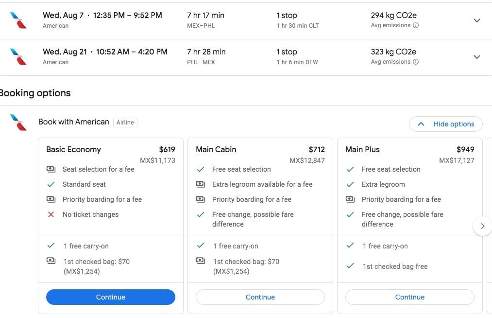 Difference in price Pesos vs $ MEX - PHL AA unable to purchase