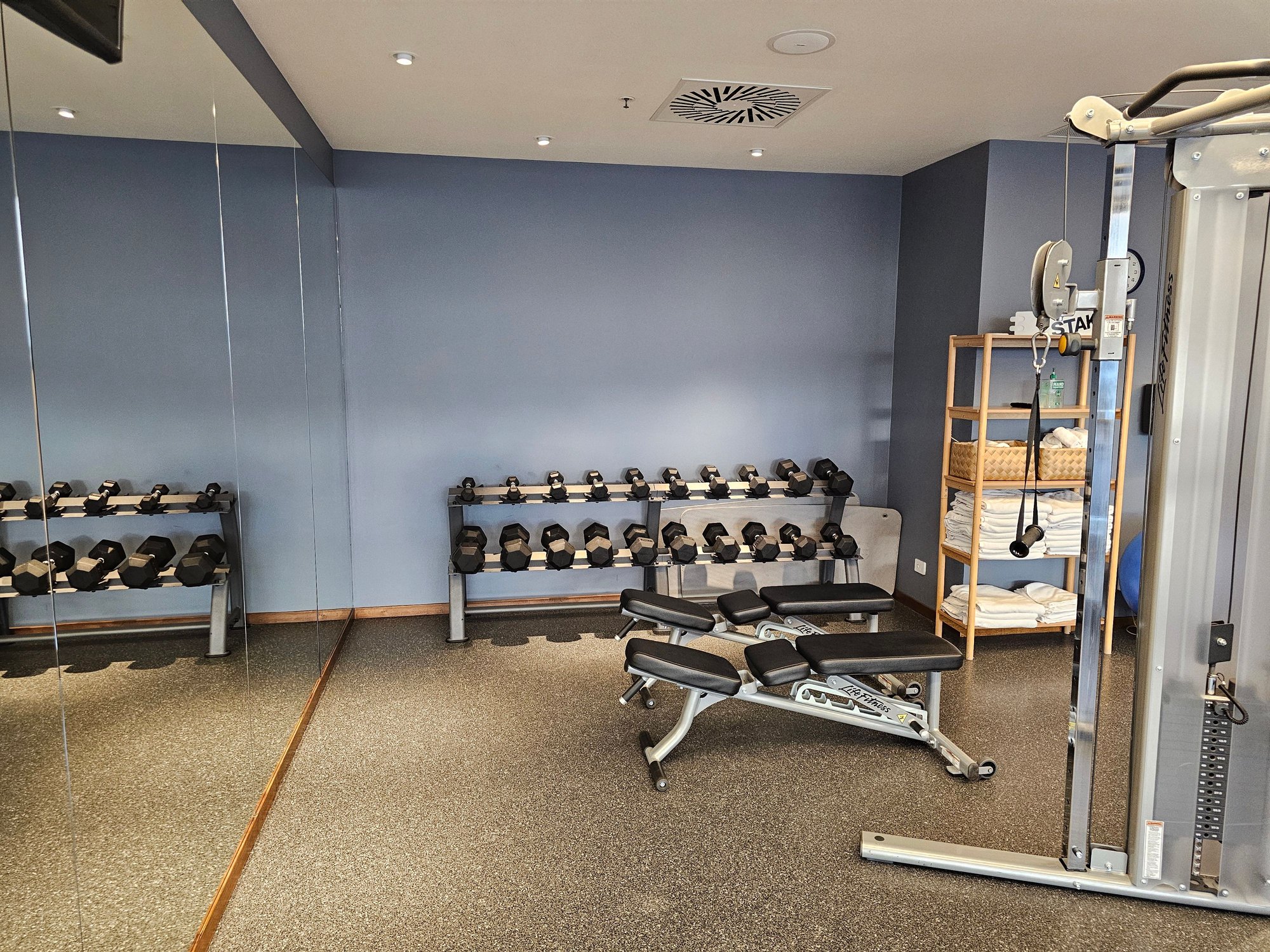 Excellent with all the modern features you could ask for, including curtains that automatically open as you enter the room and bedside buttons to open and close them. TV only has free-to-air channels but they do have Chromecast. Bathroom was well-stocked with amenities and featured a rainfall shower. There was a full minibar and excellent complimentary tea/coffee facilities including pods, hot chocolate and FOUR different types of T2 tea!