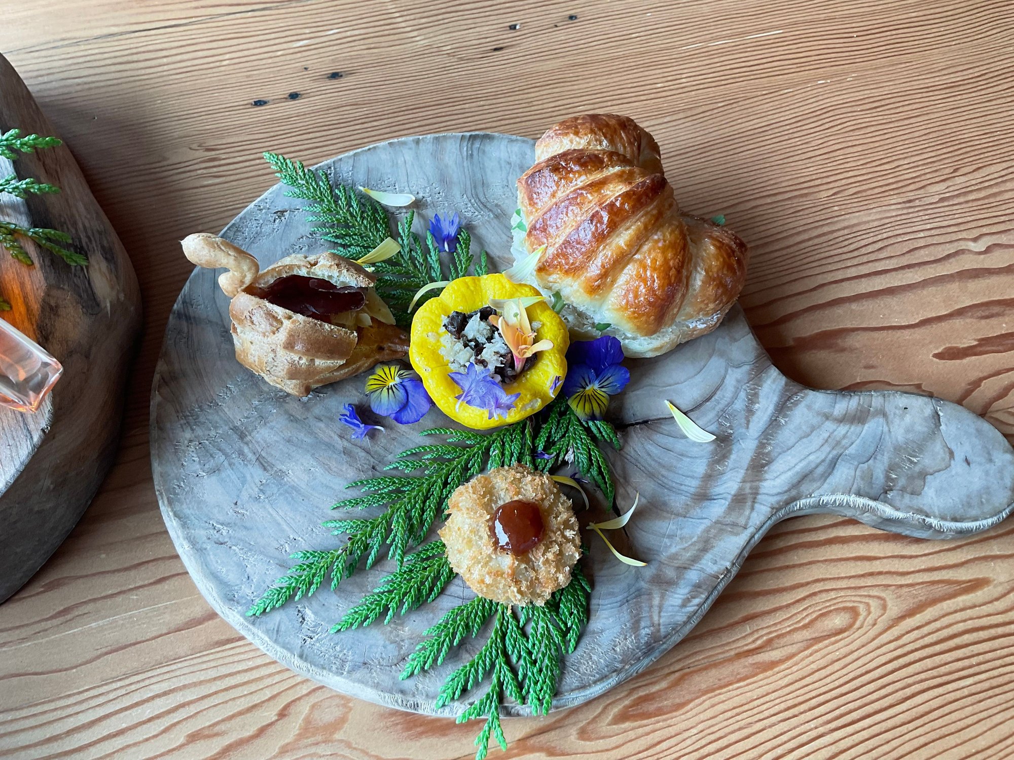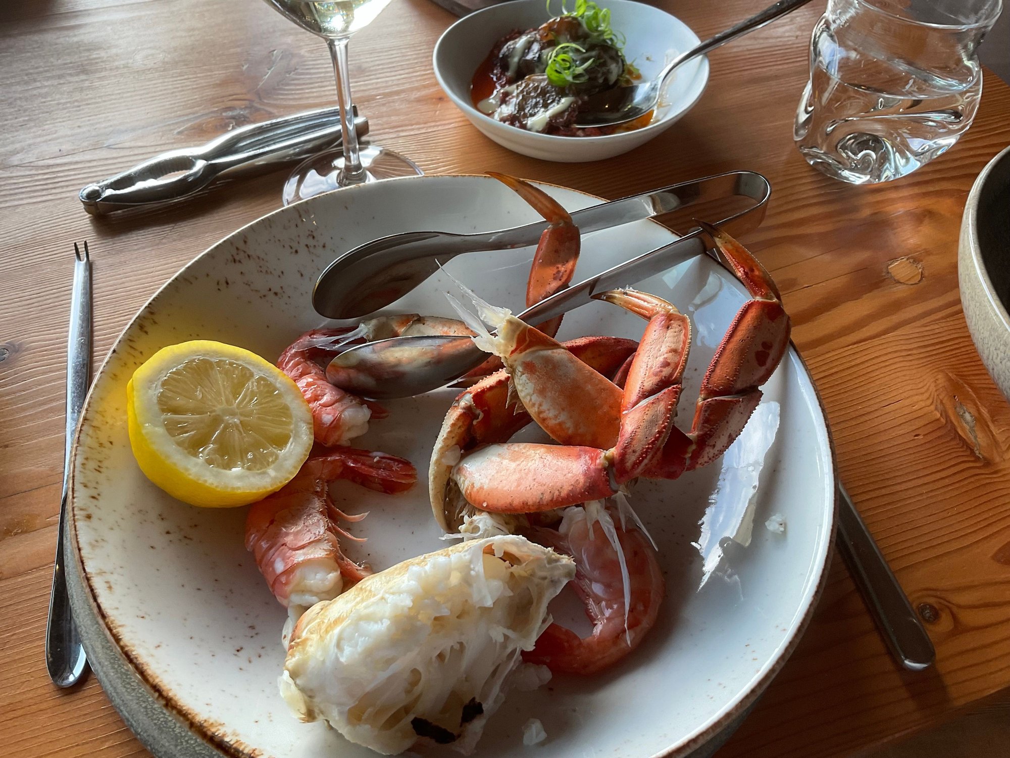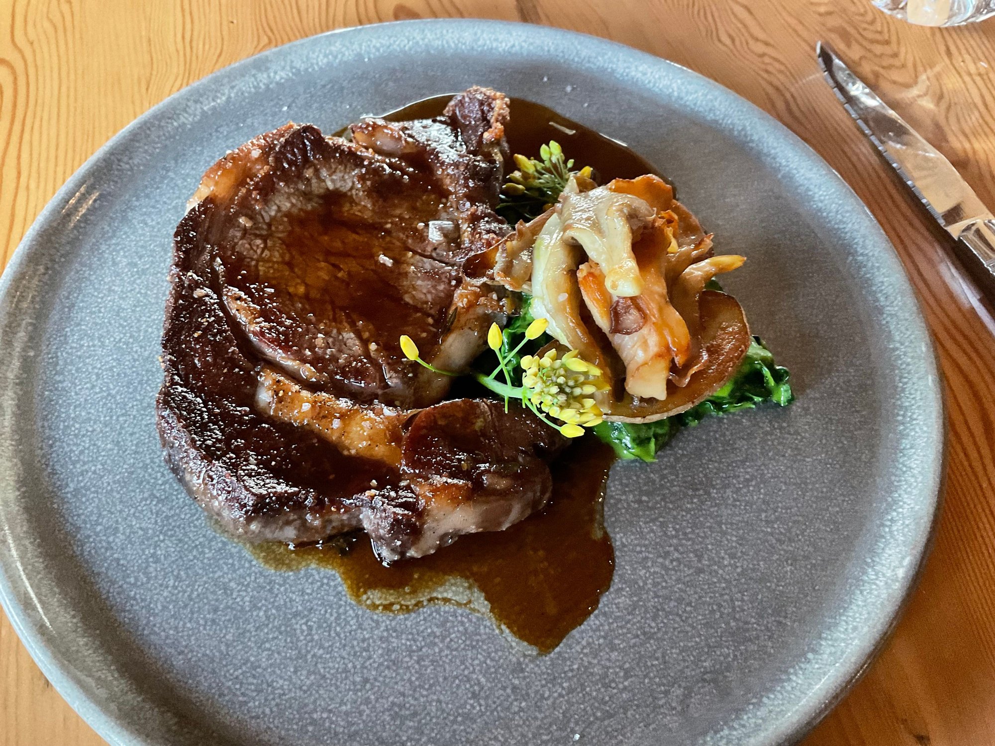 Let me preface this by saying I lost my notes so don’t recall the names of everything. To cut to the heart of the matter, food was outstanding, not too fussy, surprising ingredients, gorgeously plated and presented. Wines were very good quality, if one wanted there is a cellar of the super fine stuff for purchase. All drinks (I recommend the Nordic Fizz), wines, beers, etc. included as are all meals. And the meals are splendid. Ate my first Bambi, delicious; and my first urchin. The mushrooms are locally foraged as is much else (spruce tips, seaweed, greens) and some gardened. Spotted prawns are caught right off the dock; fish and crab locally caught. Everything brilliantly tasty and creative. The kitchen is amazing.