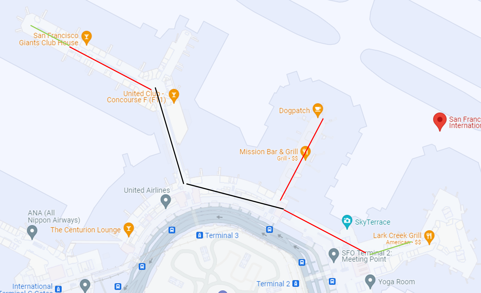 Not necessarily. AC and UA both use D gates now. And it's not much farther from D to G than it is from end of E or F to G.