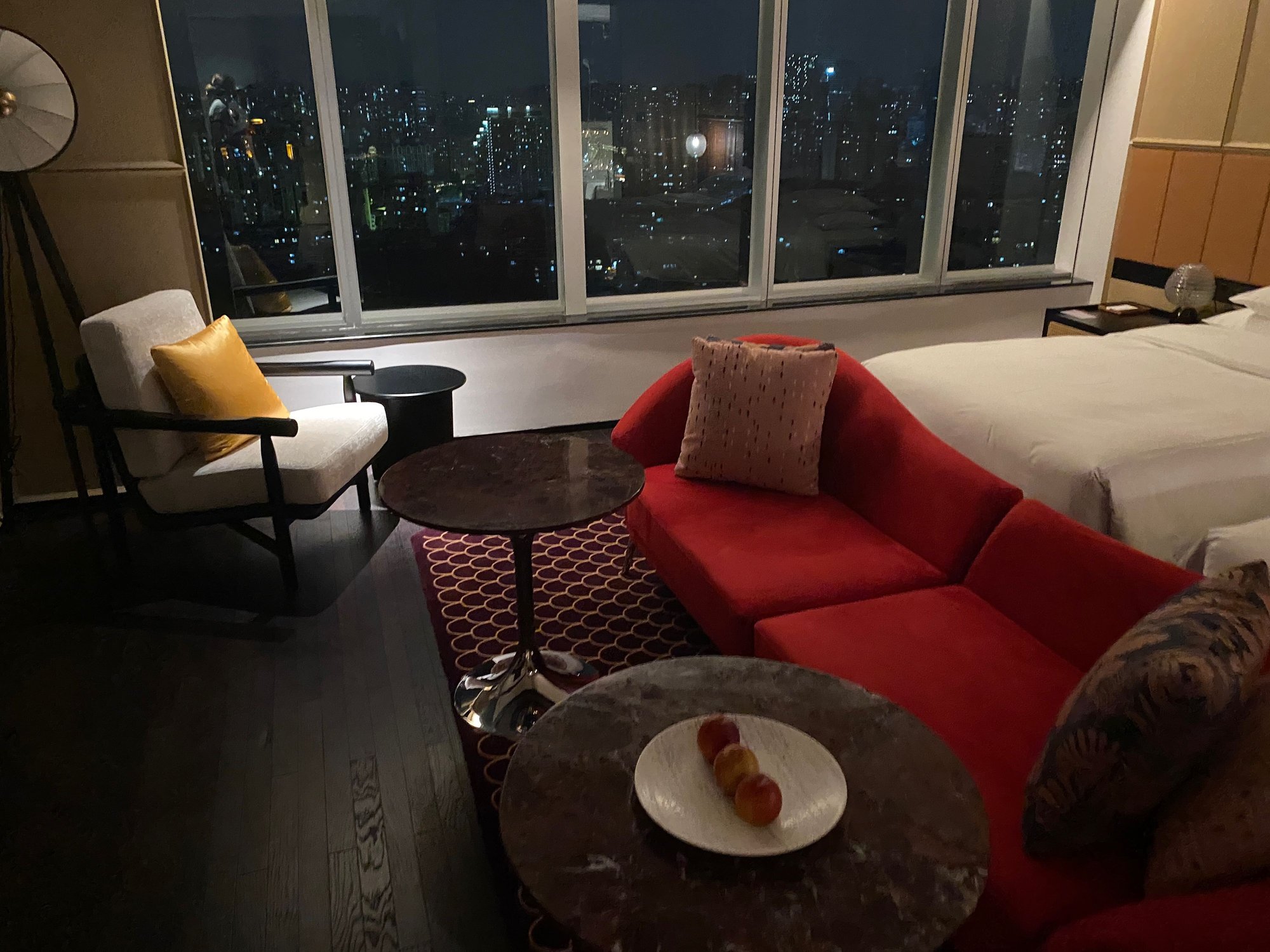 Our room was located on the 30th floor (out of 32, I think) and the view of Zhongshan Park was stunning. During my stay in Mid-June, the hotel had just opened about 2 months ago so it was all in great shape. It also seemed like no expense was spared for the design of the hotel.