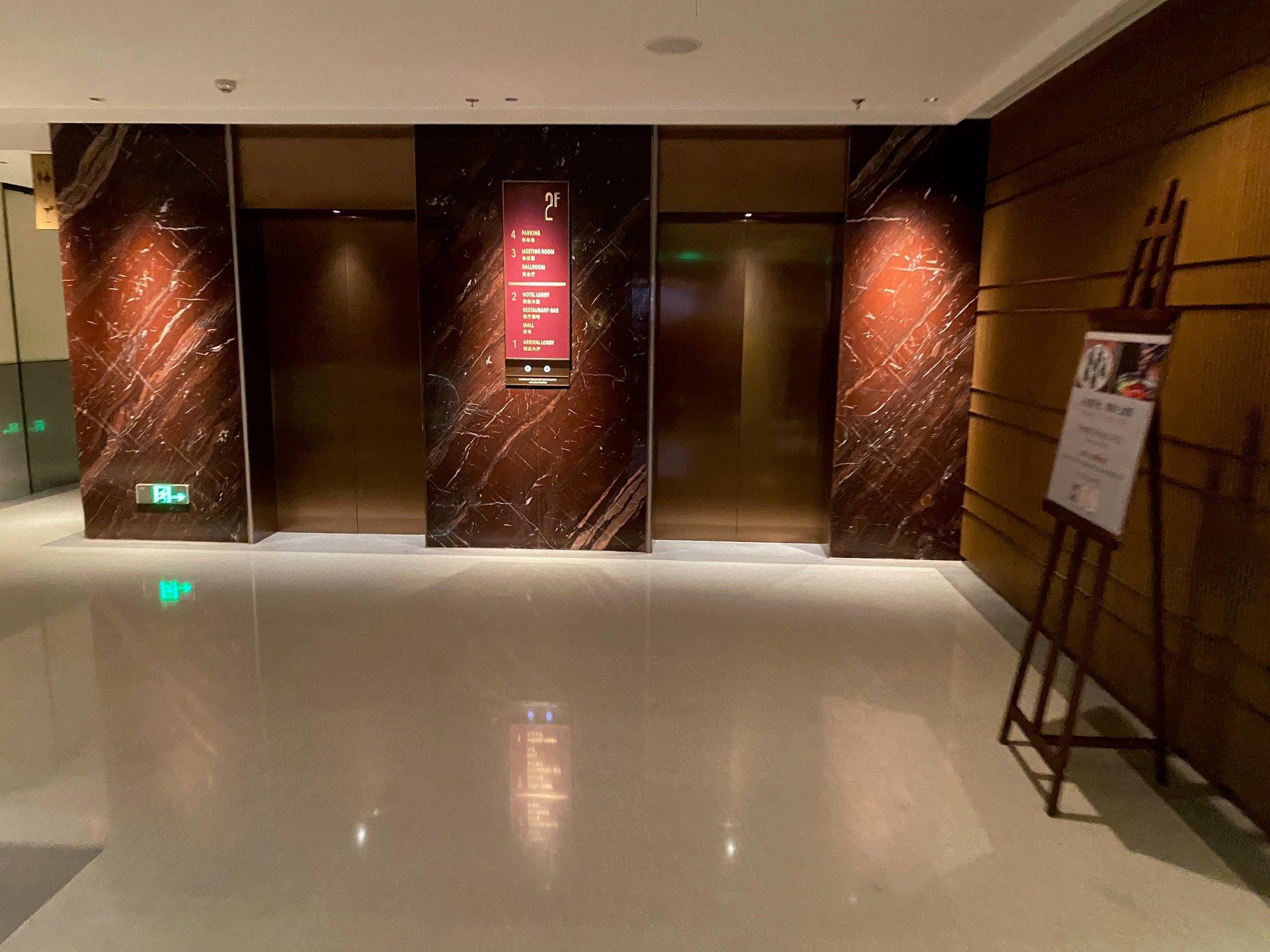 We arrived very late, but the kind staff escorted us from the main entrance by the street up to the front desk, where we were promptly checked in and shown to the elevator.