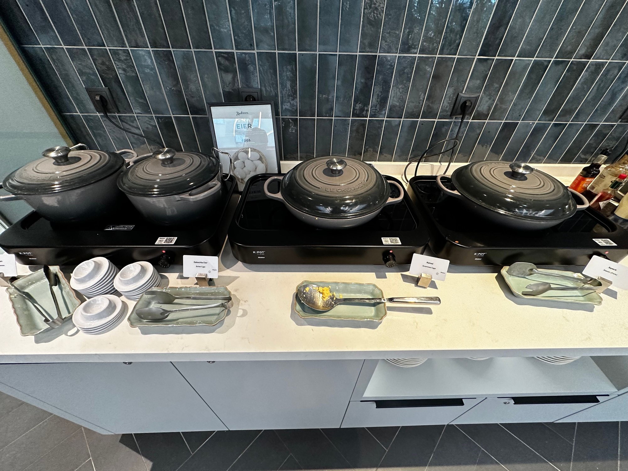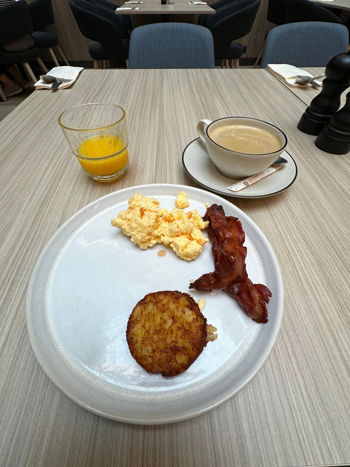 Started with the hot options which were boiled or scrambled egg, bacon, and rosti.