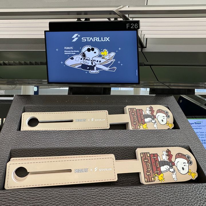 Gate 24 was packed with AvGeek and Snoopy/Peanuts fans, and two Starlux flight attendants finally showed up with various signs. I stood in queue and took a picture with them.