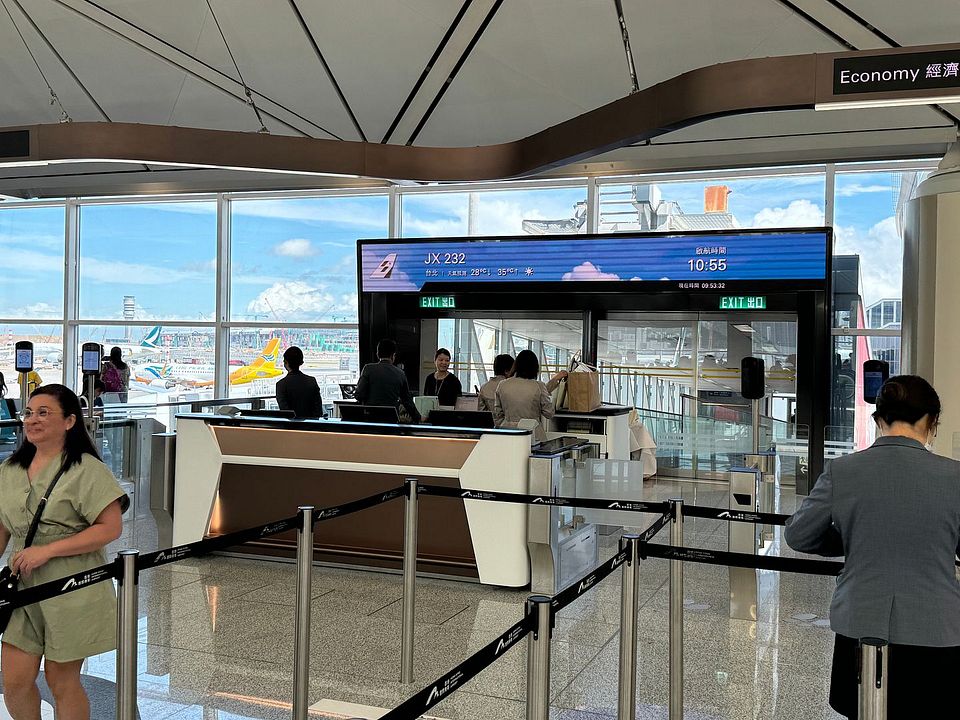 SATS is the ground agent for Starlux Airlines in Hong Kong, and check in opened a bit earlier than normal given it was their first day of operation. There were separate lanes for priority/business class/elite members, online check-in baggage drop-off, and regular economy passengers. As you could tell, it was a busy flight and lots of AvGeeks and Peanuts/Snoopy fans were joining this inaugural party. It was a shame that Starlux Airlines and Hong Kong Airport Authority could not take full advantage of it. The agent was obviously polite and everyone was learning too, so things were a bit slower than expected. When I asked about any celebration at gate, he just said that he did not know. That’s not a good sign. I should know that it is just a polite way of saying no. If I knew, I would spend a bit more time in the Qantas lounge.