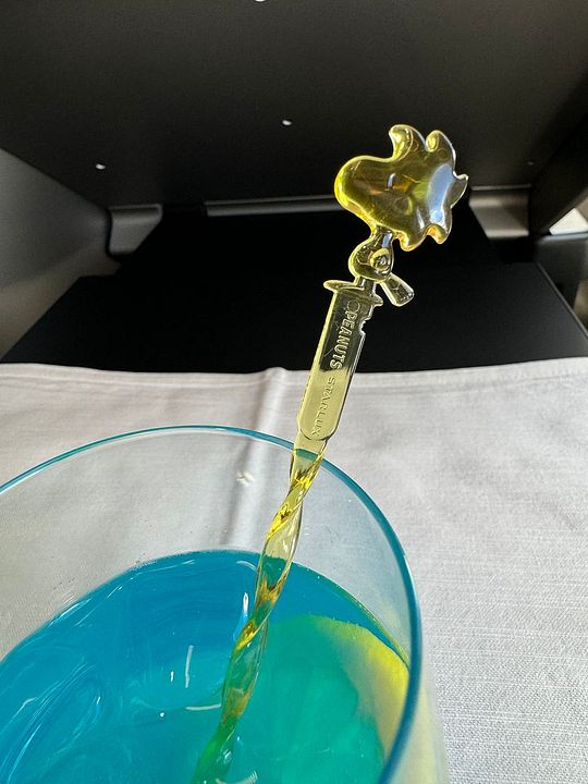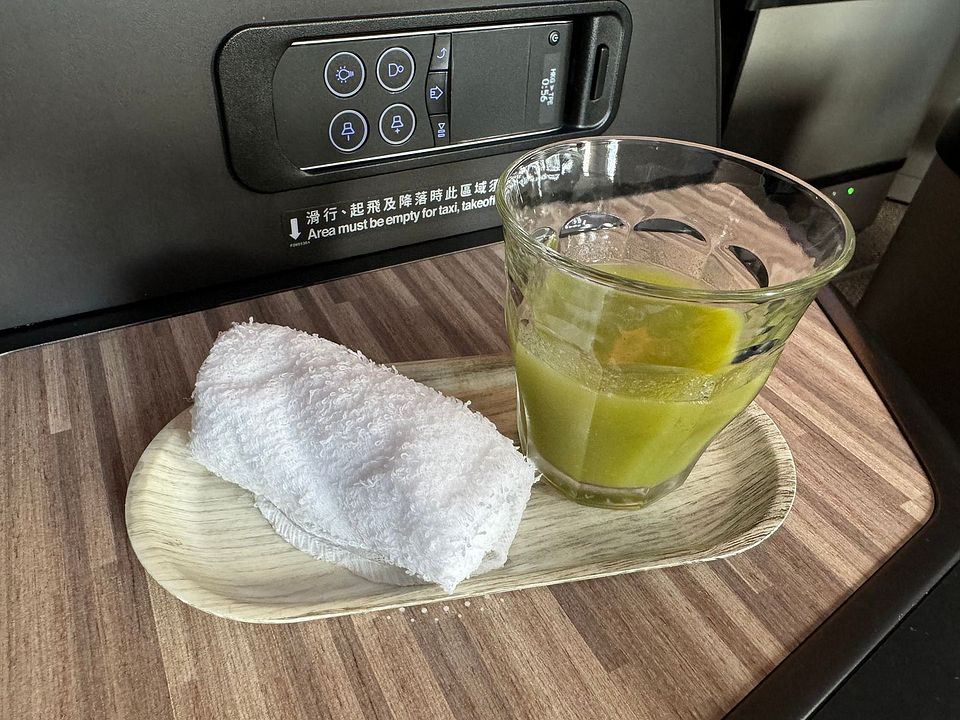 There is no pre-takeoff champagne service on Stalux Airlines. Instead, they offer a cold-pressed fruit juice and hot towel service. Today’s choice is a guava-pineapple juice. The flight attendants also took his or her times in taking meal and beverage orders. They are very patient and also offered to show how the seats worked too.
