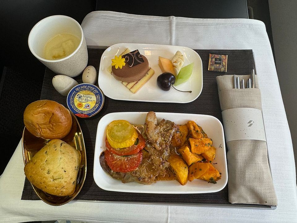 I love Starlux’s creative menu and the choice for tapas is great. I had the tapas for the return flight and will attach those pictures towards the end.