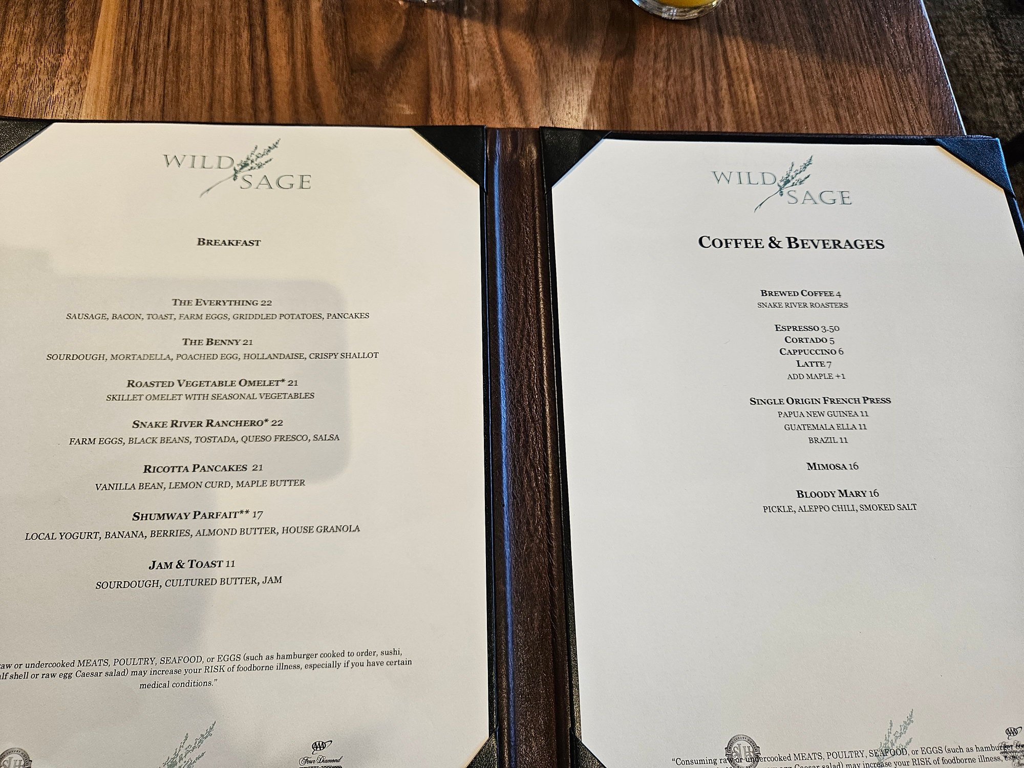 Breakfast was included for 2 guests at the Wild Sage restaurant. I had thought they would include an entree and drink per guest, but it was the entire breakfast check that was covered (excluding gratuity). pretty generous if you ask me! they had a few items unavailable on the menu (benedict on the 2nd morning and french press coffee was unavailable). service was great. we had dinner at the restaurant as well- delicious and was nice to make use of my surpass / hilton biz card credits.