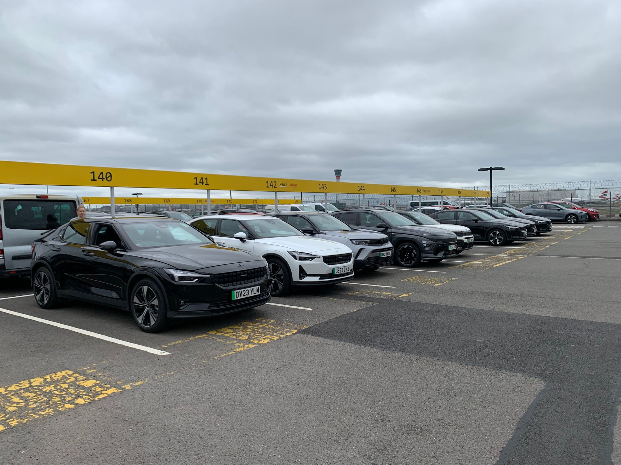Some snapshots of two of the aisles at LHR today. Remember that car classes are mixed up. In terms of EVs, lots of Polestars, more and more Hyundai Konas and lots of Jeep