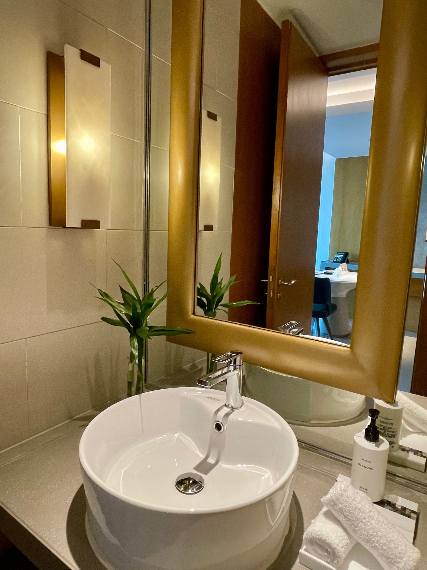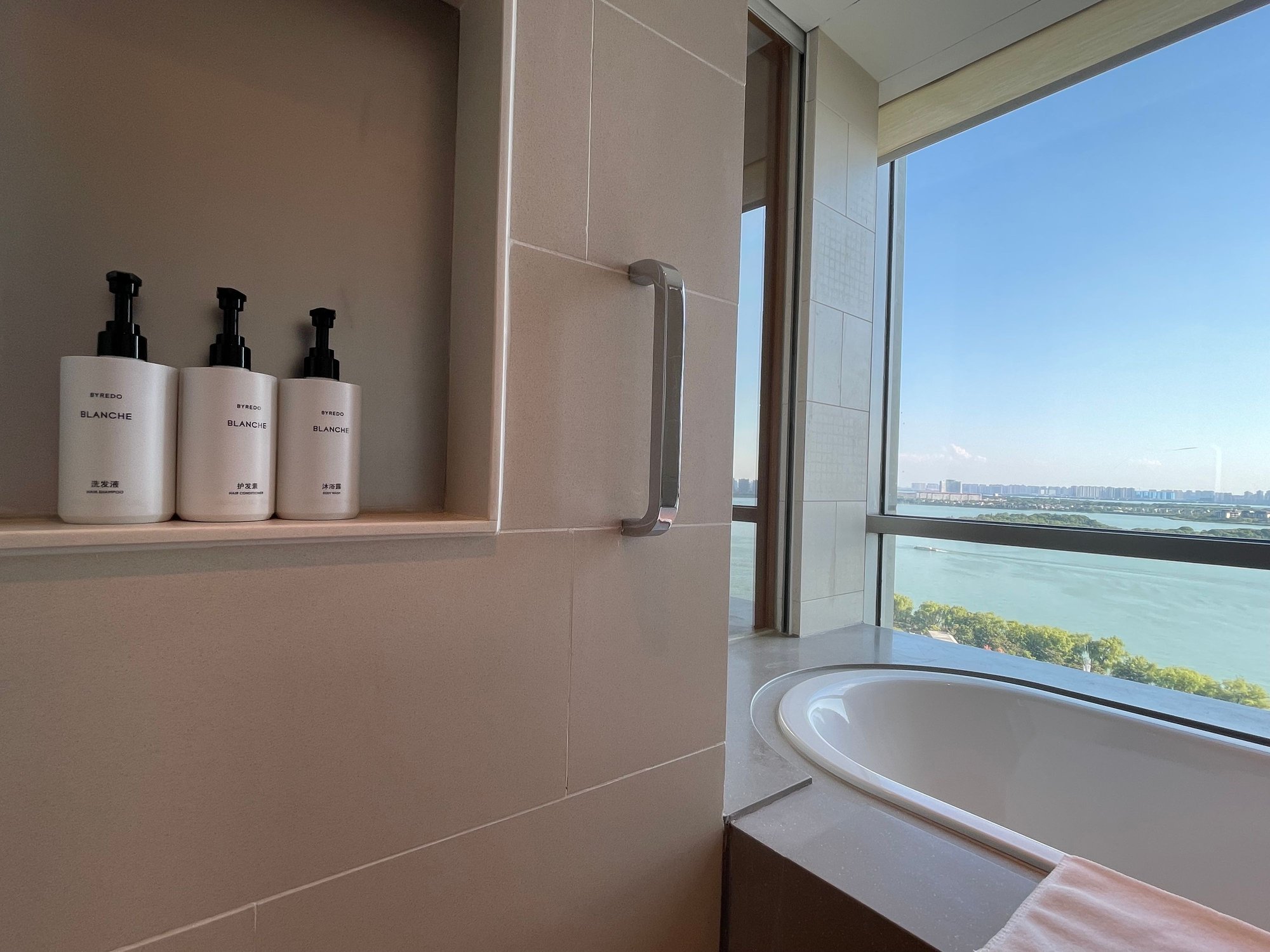 Blanche Byredo toiletries. View from the bathtub area.
