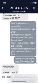 MQD earnings during the 2024 calendar year count towards earning status for the 2025 Medallion status year (2/1/25 - 1/31/26) and thus you earned a 2025 Plat Choice Benefit (they won't also give you a 2024 Plat Choice Benefit -- only people who earned Plat during 2023 calendar year received those). The RUCs will be good for travel through the end of 2025 Medallion status year no matter when you choose them. You won't get another Plat Choice Benefit next year unless/until you re-earn Plat status and you will then get a 2026 Plat Choice Benefit.