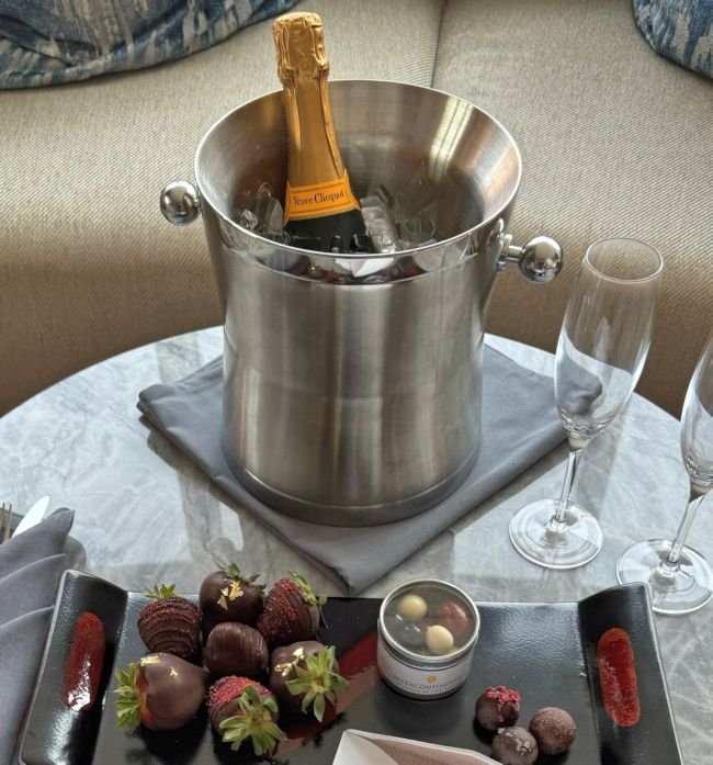 The welcome gift was a half-bottle of Champagne and some chocolate treats. Perfectly acceptable: