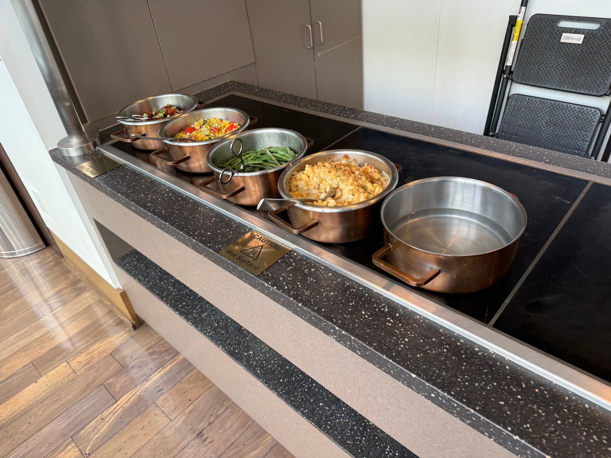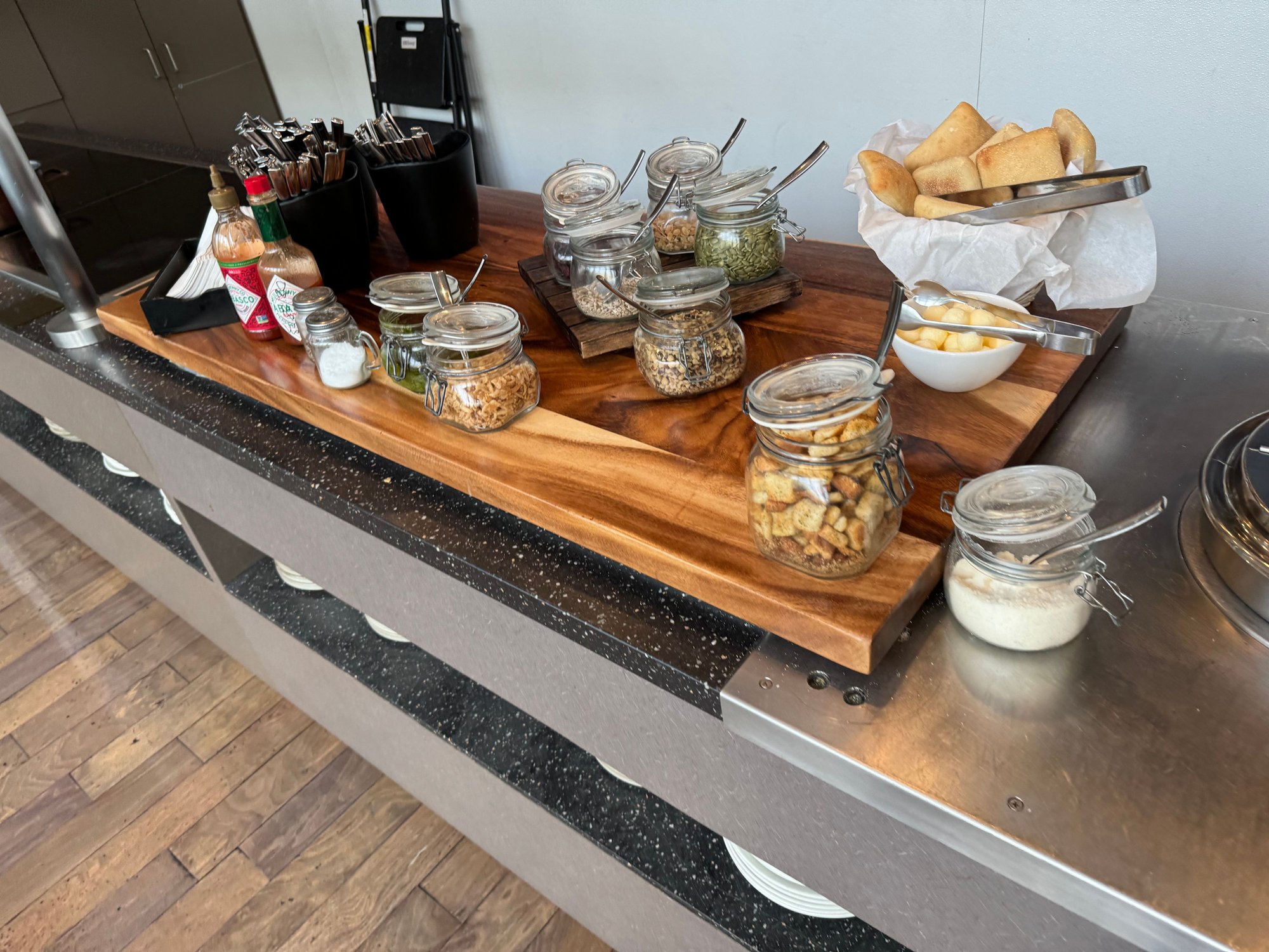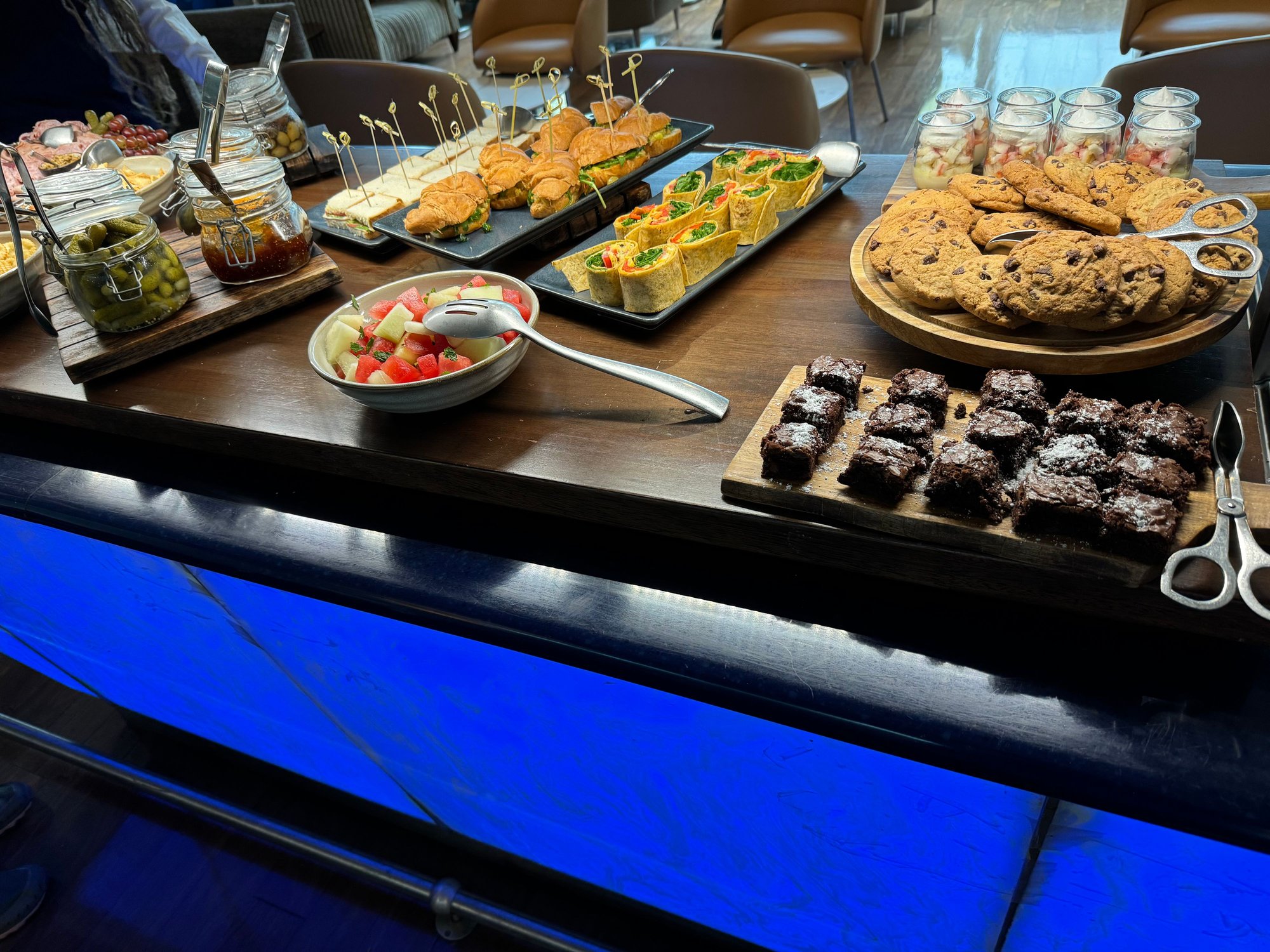 This lounge is up to par for an international business class lounge. Had no troubles accessing the lounge right as they opened on a business class AA ticket to Lisbon. Fantastic meal selection. Spoiled with endless choice of snacks, desserts, hot and cold food options. The only downside is the seating is no the most comfortable and a lack of outlets at most seating locations.