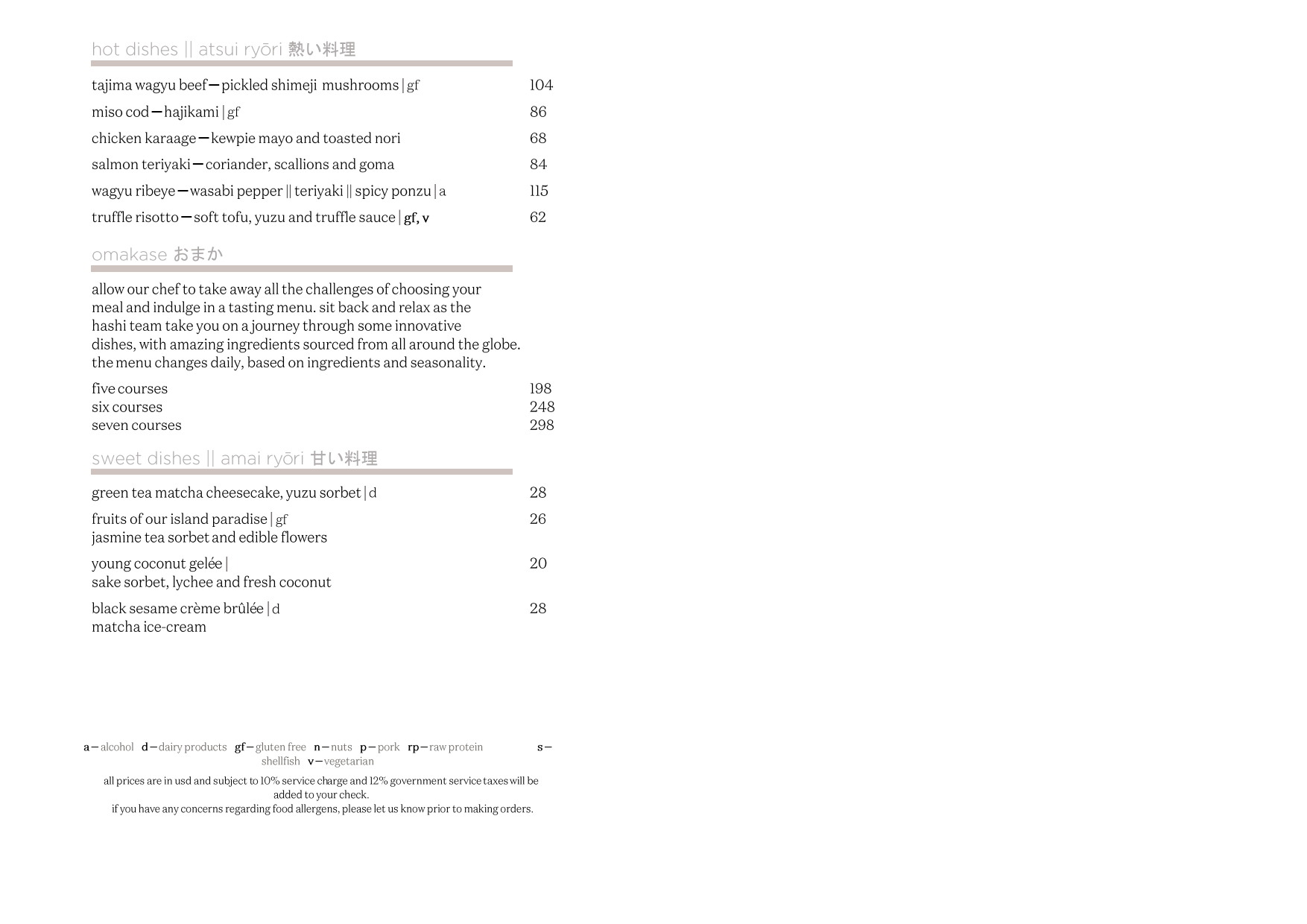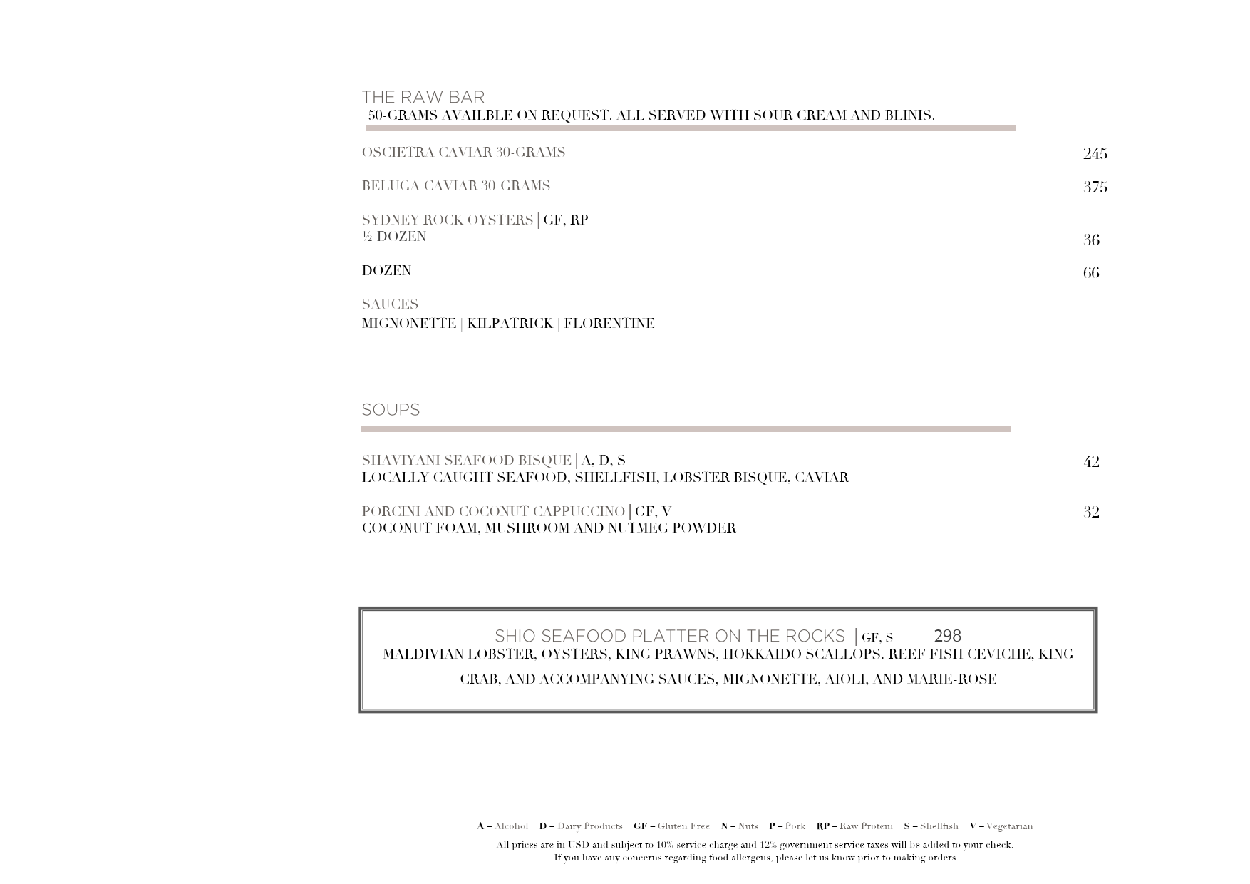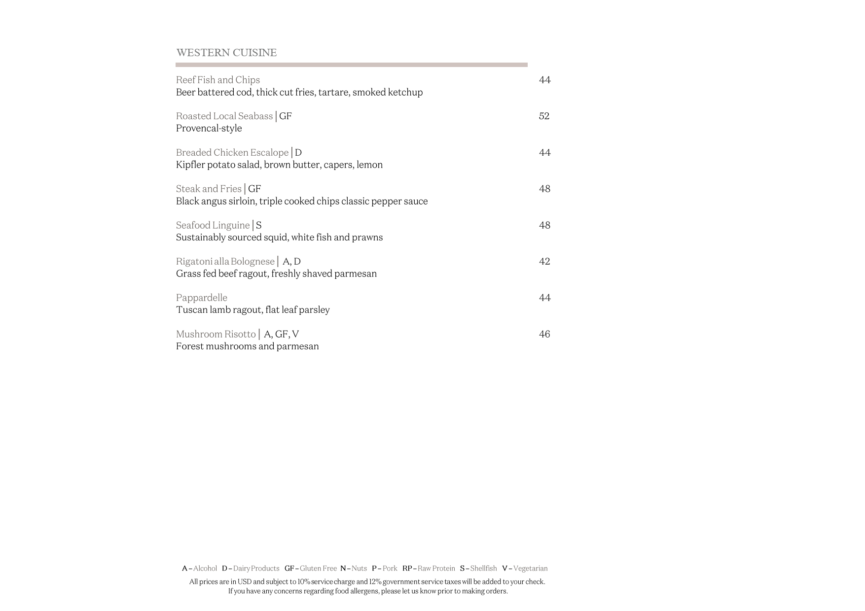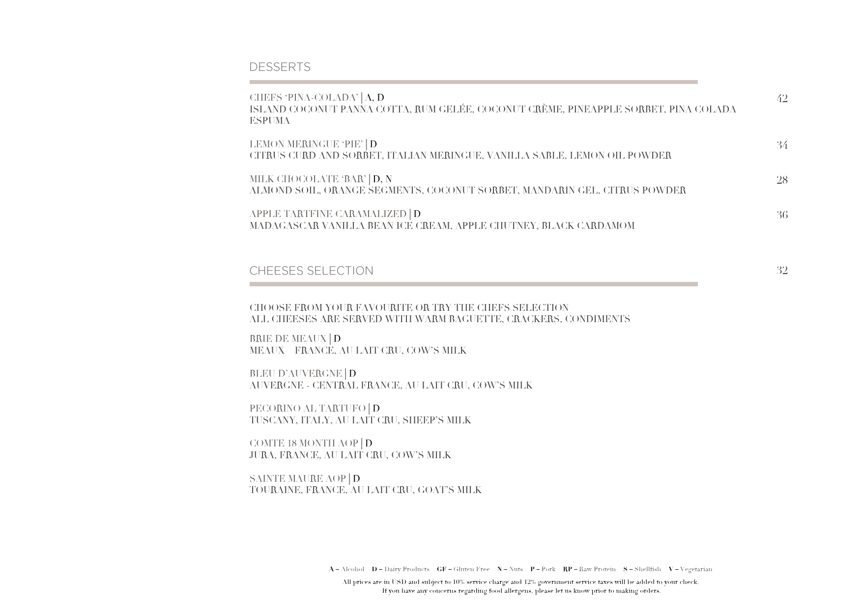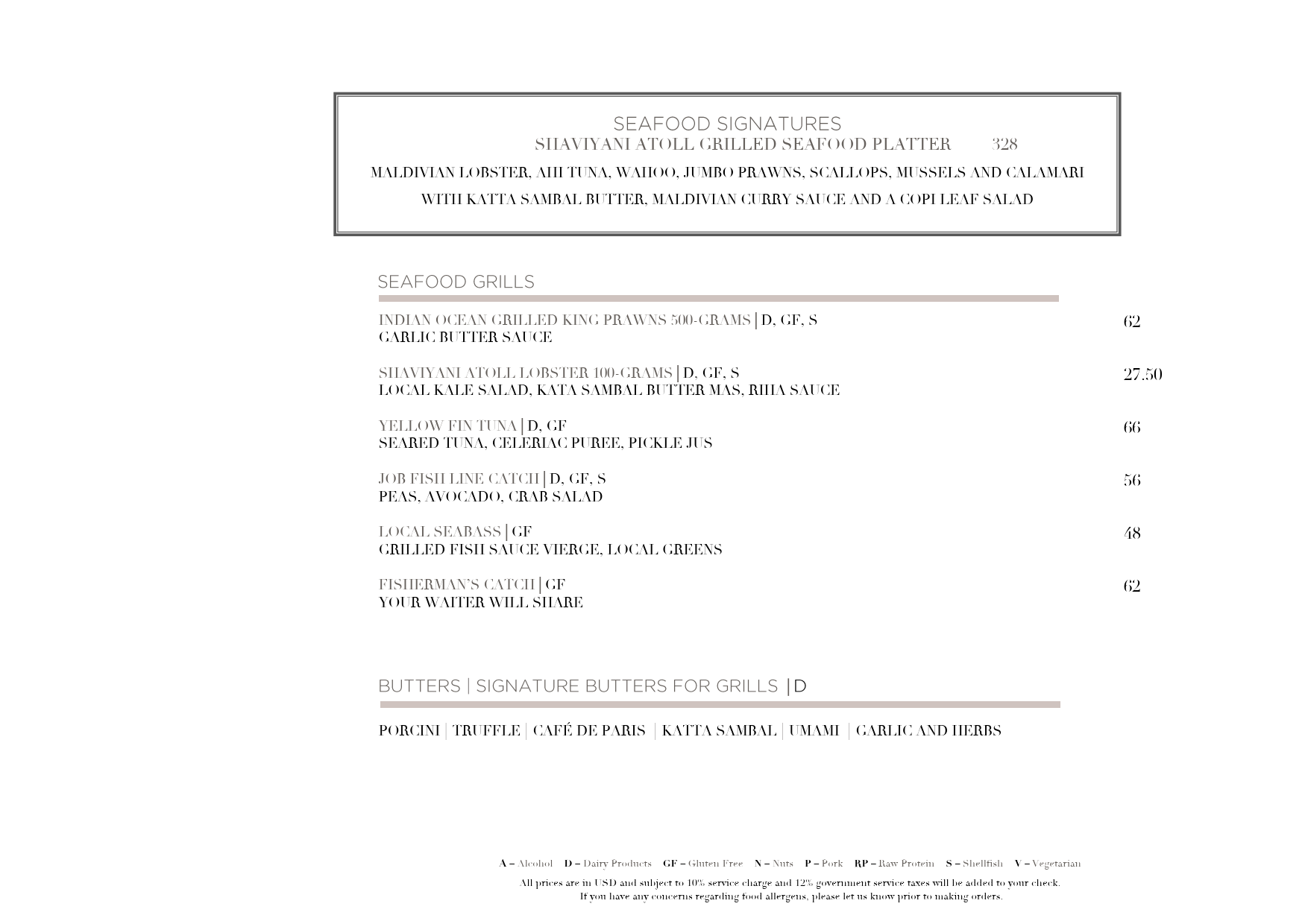 And for prosperity here, unfortunately I don't seem to be able to upload the menus I was given as PDFs (and they're from 2020, so pretty aged now), but here are the PNG versions. You can see from the prices, all excluding the 10% service and 22% government tax, that you can easily spend a thousand dollars on a dinner for two people, or you could be careful, avoid the most pricey options and save money and probably eat for USD200 for two. Personally I'd say that the all-inclusive just removes the worry about how much things cost, lets you set a fixed price up-front, and lets you snack, graze and drink through the day. Anything less than that, you are just going to need to be more careful - but that is easy to do if you hang around in your villa/bungalow, and don't go out from it much.