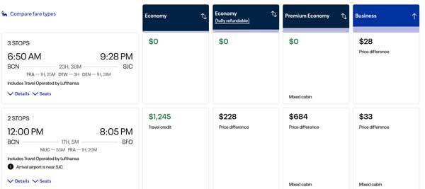 Yesterday I used the chat function and an agent spent about 40 minutes trying to find a way to book that flight, but couldn't get it to work out. Only way she could do it was to specifically select the two LH flights (bcn-muc & muc-fra), which kicked the price up $980/person. Ah... no. Being tenacious (ok, stubborn) I checked again this morning... it still showed. And still failed. So I tried something different. I noticed you could book the Premium Economy fare with the same flights, with the LH flights showing in Y fare class. I then tried BCN-FRA-SFO and forced Y & Z classes. Woah! I ended up with LH BCN-FRA direct, and FRA-SFO in Z, for just $26 more. Get to leave at 1:20pm instead of 9:10am, one fewer flight, UA metal over water. This is as good as I could have hoped for. Hopefully my wife will be doing well at the time, but Stage 4 cancer... the treatment takes a toll, so having an easy trip home was a high priority. Bonus that I'm now off LH TATL metal so I accumulate UA lifetime miles.