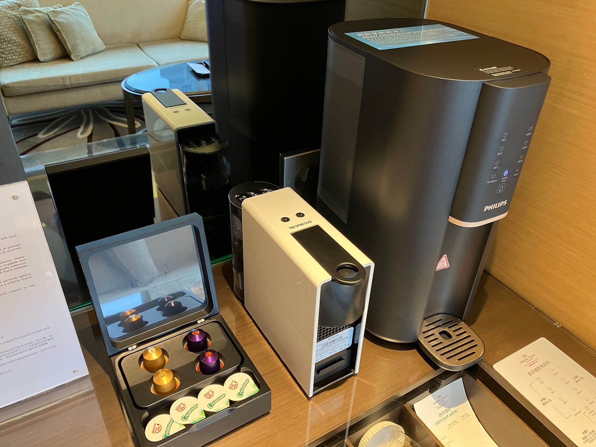 Arrived just after 15:00 and noticed pretty quickly from the mad typing and whispering that the Racecourse view room the app had been showing as an upgrade wasn’t available just yet. I was thus given an Executive Suite. These are probably 80-90 square meters, very large and well appointed, with a very pleasant view over Happy Valley. Back when the hotel opened, I commented that I didn’t understand why they didn’t turn it into an IC, it certainly had the hardware. That hardware has now aged quite a bit, but it’s still a great hotel. What’s new is that rooms now are equipped with a water station rather than plastic bottles.