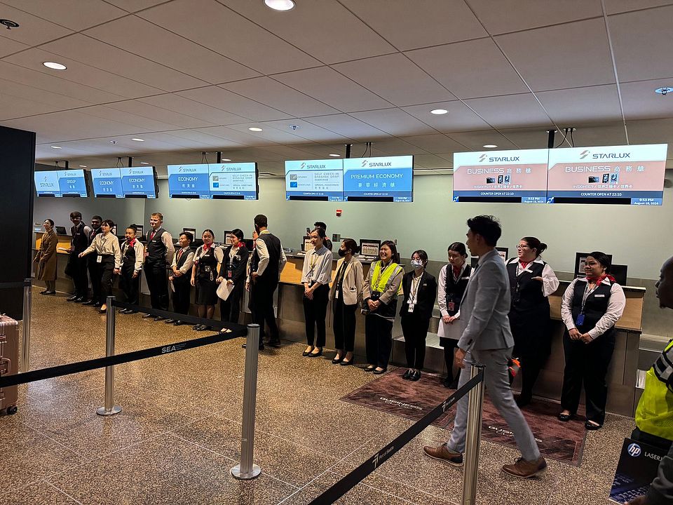 I arrived earlier on WestJet from Calgary, which was an awful arrival experience. WestJet was using a remote gate and it was just a poor experience in ground, not to mention the never-ending construction state of the baggage claim area. The departure hall was just so crowded this evening, as United cancelled the Dulles redeye with passengers standing in queue waiting to be rebooked. Starlux Airlines thankfully got a nice decent space, and there were separate queues for first, business, elite, self-check-in, and economy passengers. Economy cabin looked fairly full this evening. Asian passengers really like to check in early.