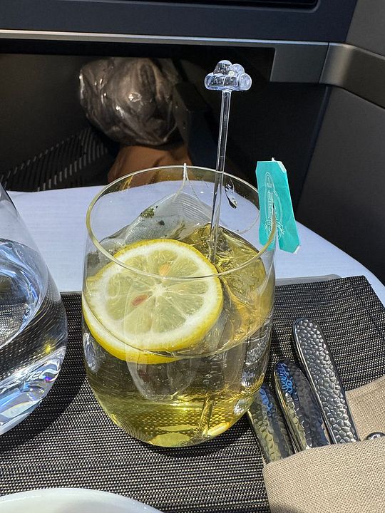 Boarding began at 1:32am and it was okay orderly despite the crowded space. Please note that Seattle used only one jet bridge for boarding. The same purser, Phoebe and business class crews welcomed me back onboard. We had a more relaxing chat after takeoff this time, as things were fairly calm now. The cold-pressed juice was offered again, and I like the cucumber and passionfruit choice this evening.