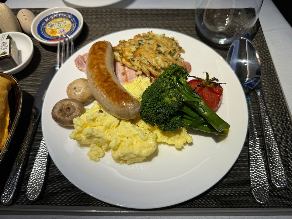 Lights were turned on about two hours and half prior to landing, and the same breakfast service was offered. I took the international option again and other than the strange tasting potato roestic on the classic Breakfast main course, it was a pretty good breakfast. Catering out of Seattle was impressive and everything tasted well.