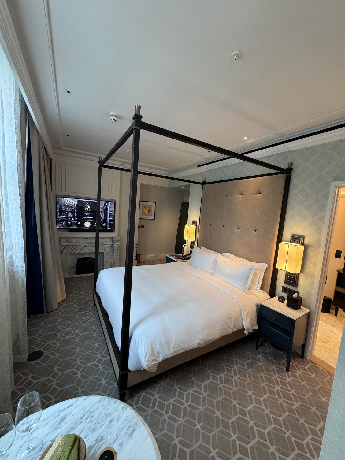 Overall, GSY is a very nice Hyatt option for London. I found the staff to be extremely friendly and it does feel like an elevated hotel experience with “5 star like” amenities. As a Globalist I was upgraded to a Premium King which was a nice corner location. For an upgraded room type (just below the official suite categories), it wasn’t huge but comfortable compared to make London hotel rooms. My room was adorned with a fireplace, corner location and a large bathroom with a window.