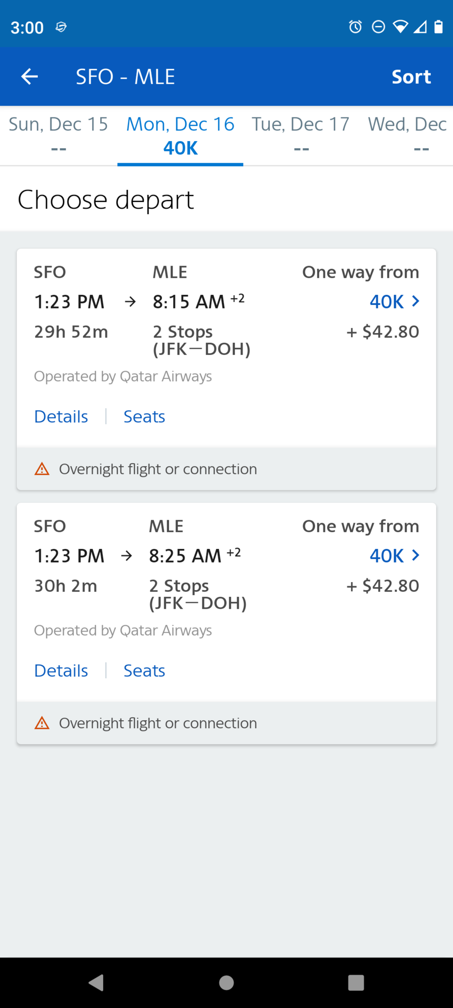 on QR website, I don't see anything. AA and QR show different availabilities, it seems like, for QR flights.