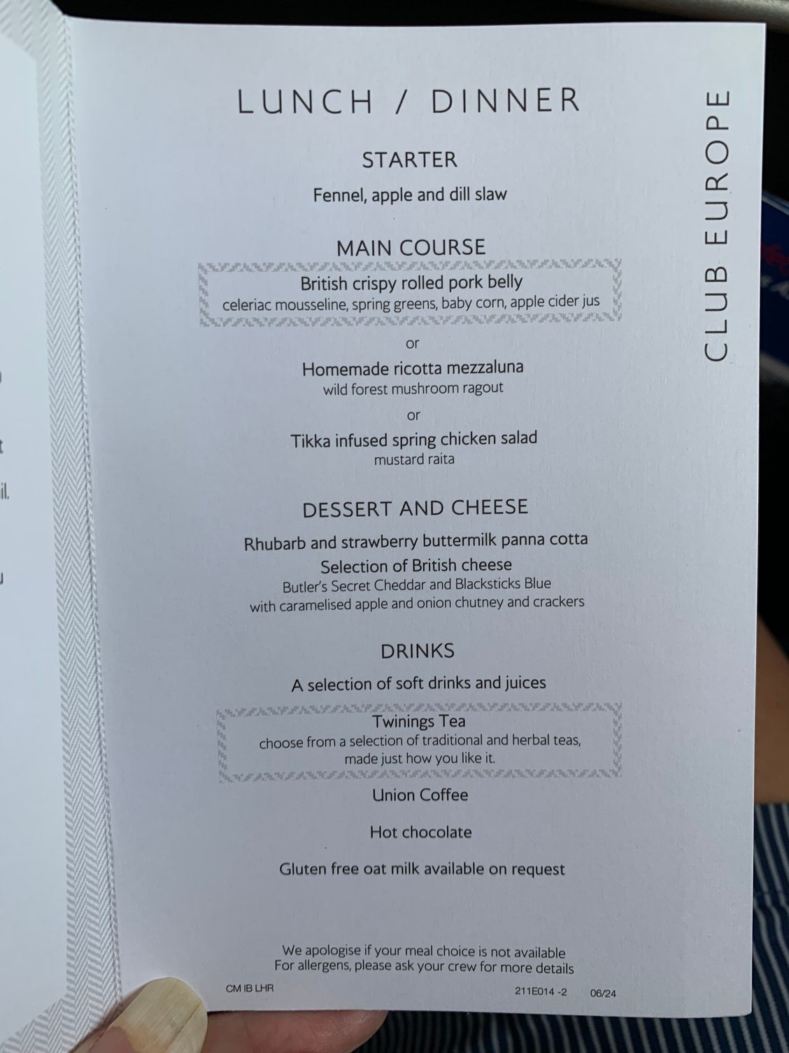 Both I and teenager #1 took the precaution of ordering the HNML after the outbound chicken debacle.