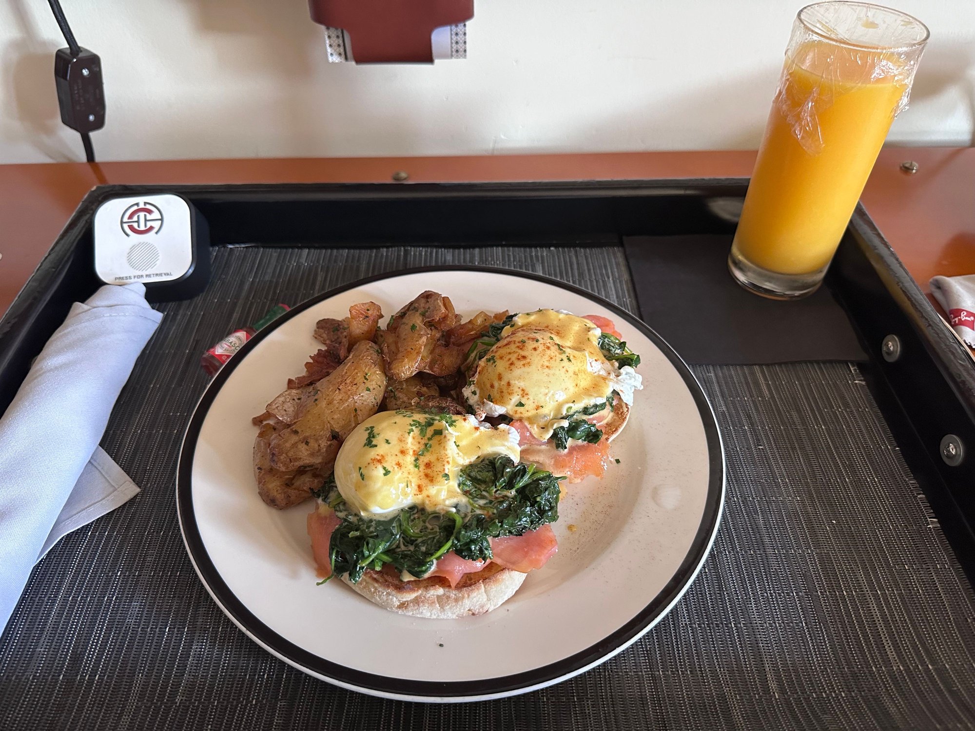 Eggs Benedict w OJ.