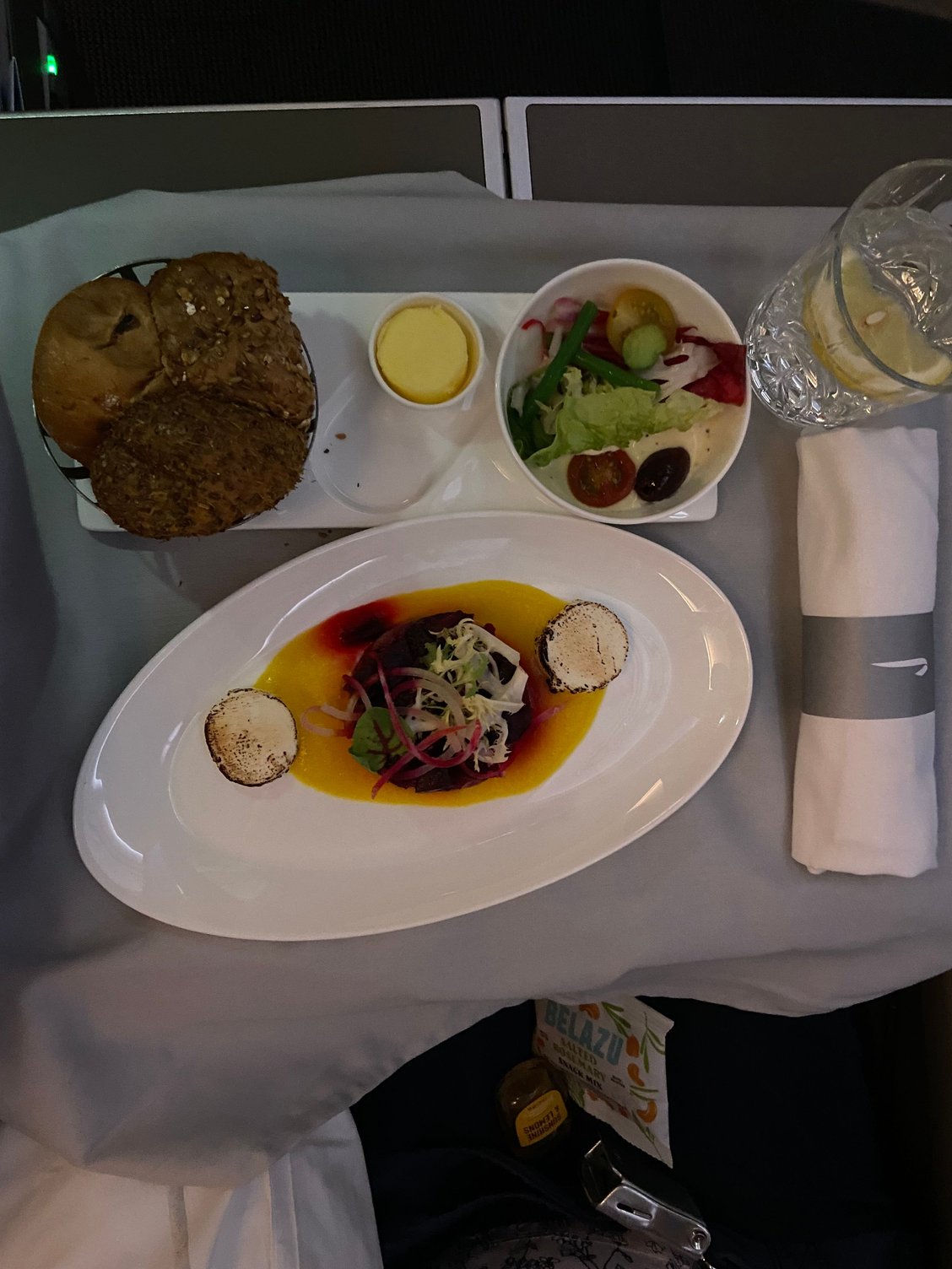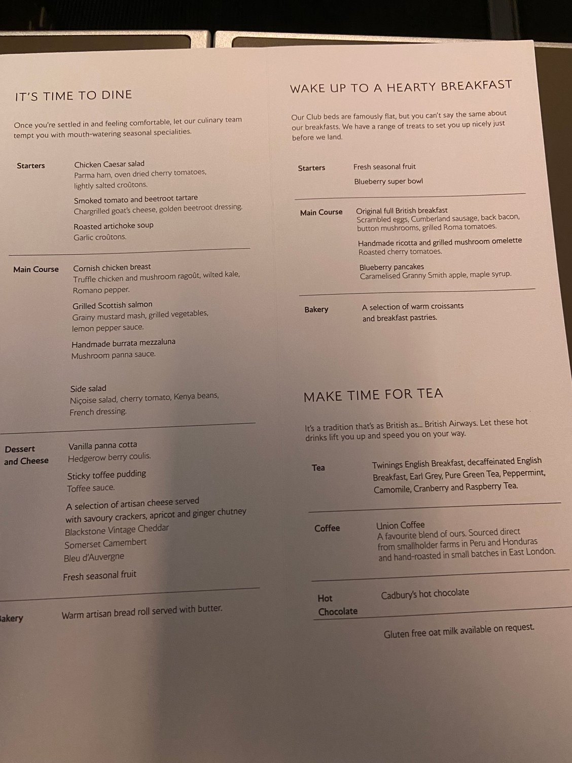 Mrs S’s choice. Irritatingly the main course didn’t photograph well (user error) but it was nicely presented and was quite flavourful. All in all we were impressed. It looked and tasted good. Certainly better than I remember. Last time I had a Club World meal was January and I’d say this was a step up.