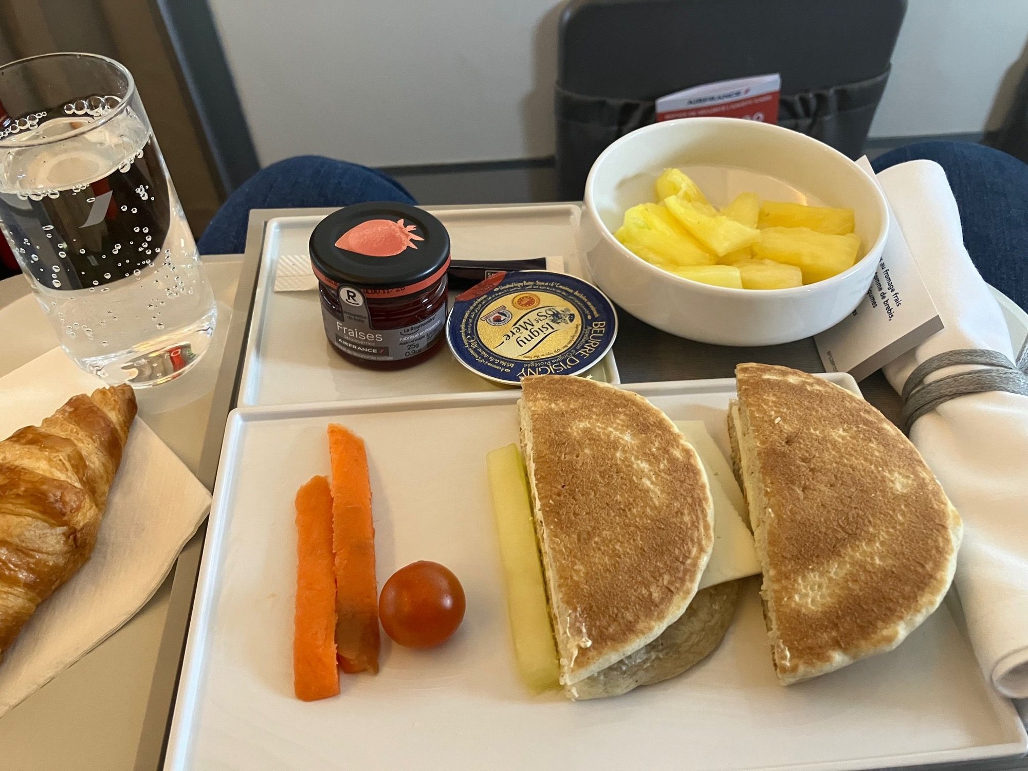 The morning offer for CDG departures is slightly preferable, although sometimes the quality of breads disappoints. This is still weird food for breakfast, but ok, they're making an effort to be "creative."