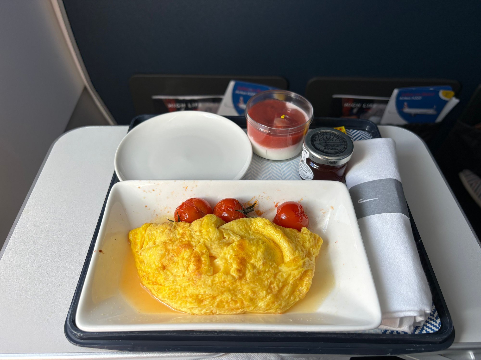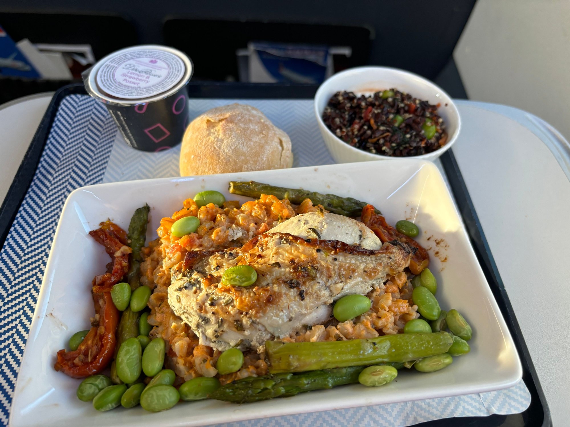 Chicken was moist and delicious. Outbound breakfast was pretty bad. Possibly not helps by the 2.45 delay so meals were sat in ovens waiting to be heated for a fair time