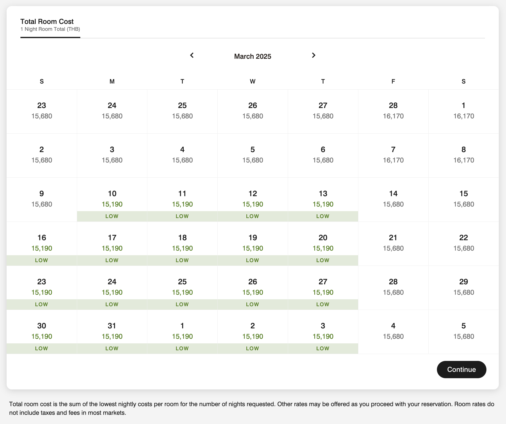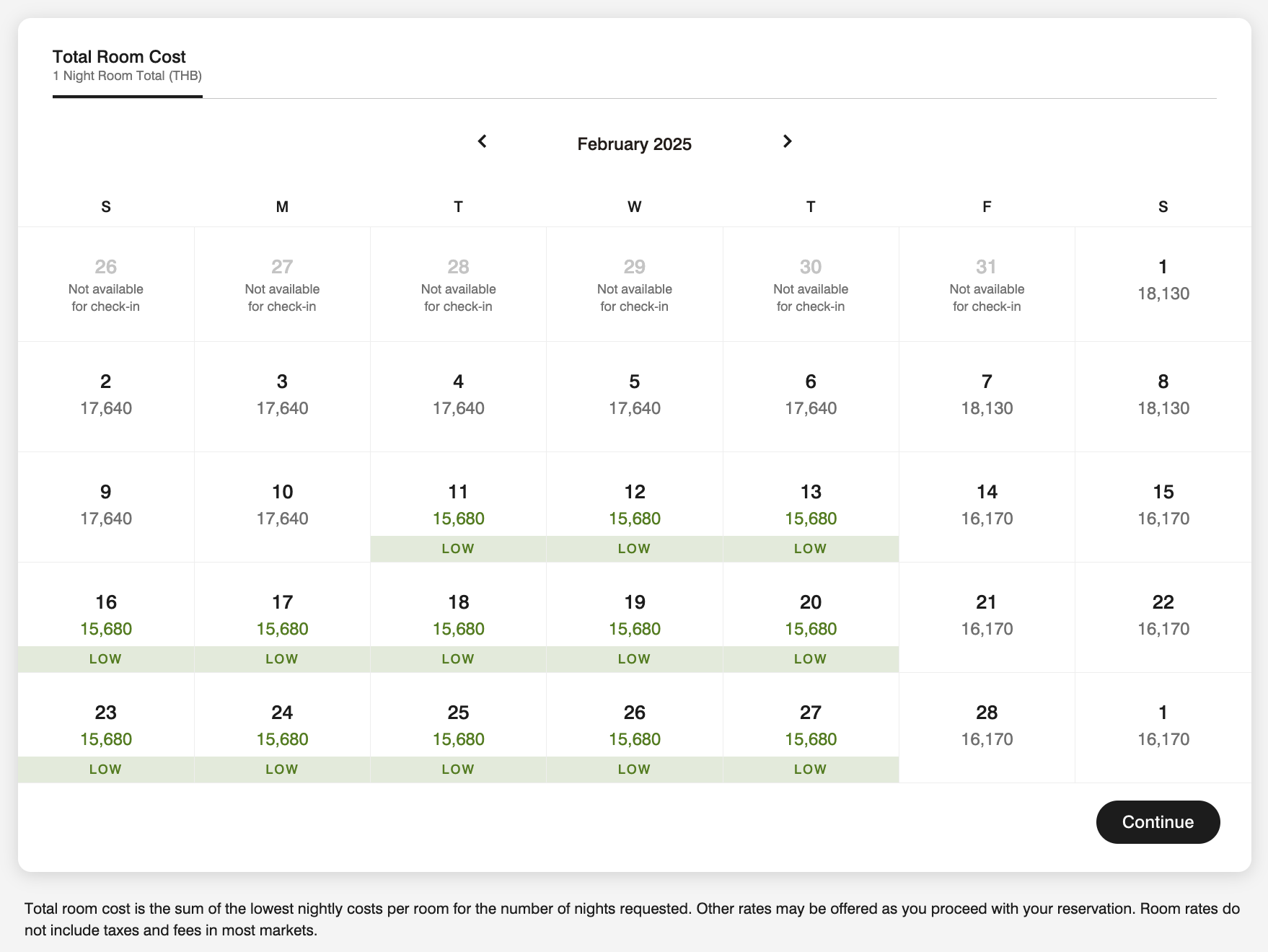 * Club Level room starts at 22k/night (about 25% above the base price)