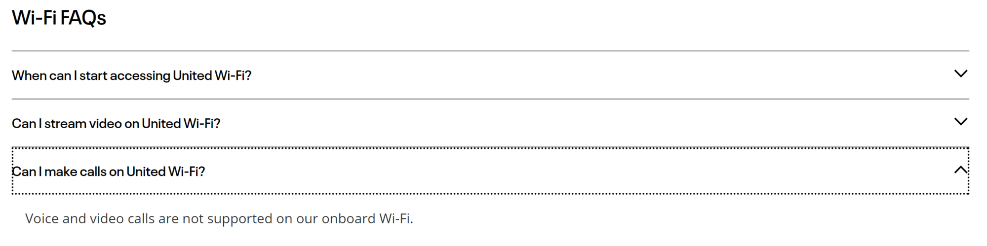 And I believe the terms and conditions while buying WiFi in flight explicitly disallow voice and video calling, but I can't find a copy now (and since I'm on the ground for another 26 hours I can't actually try to purchase WiFi to see what the terms in the flow are.