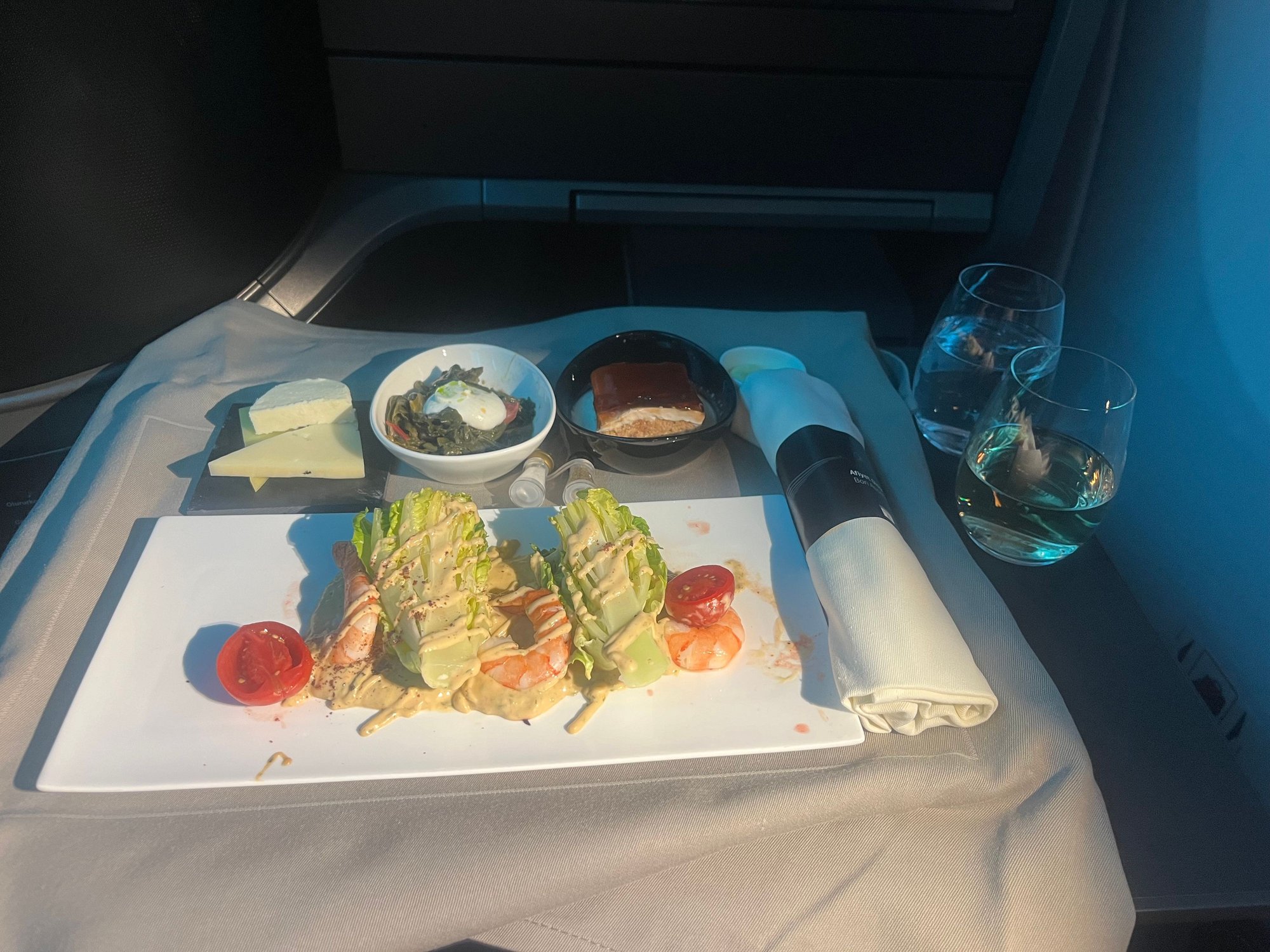Below is TK’s take on BA’s three prawn salad on IST-LHR a few weeks ago. Except this is a starter on TK, not a main course…