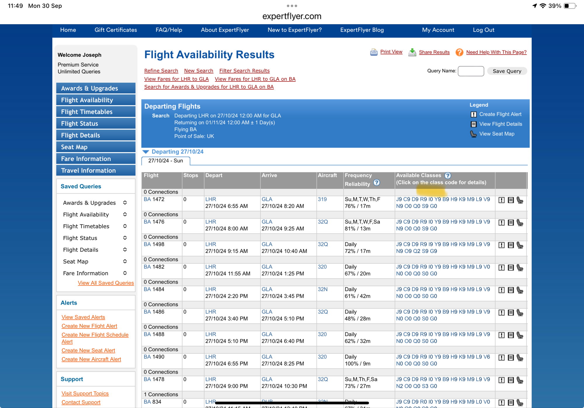Same for GLA for end of Oct! EF shows J9m I0 for all flights - but ZERO options when i try to book
