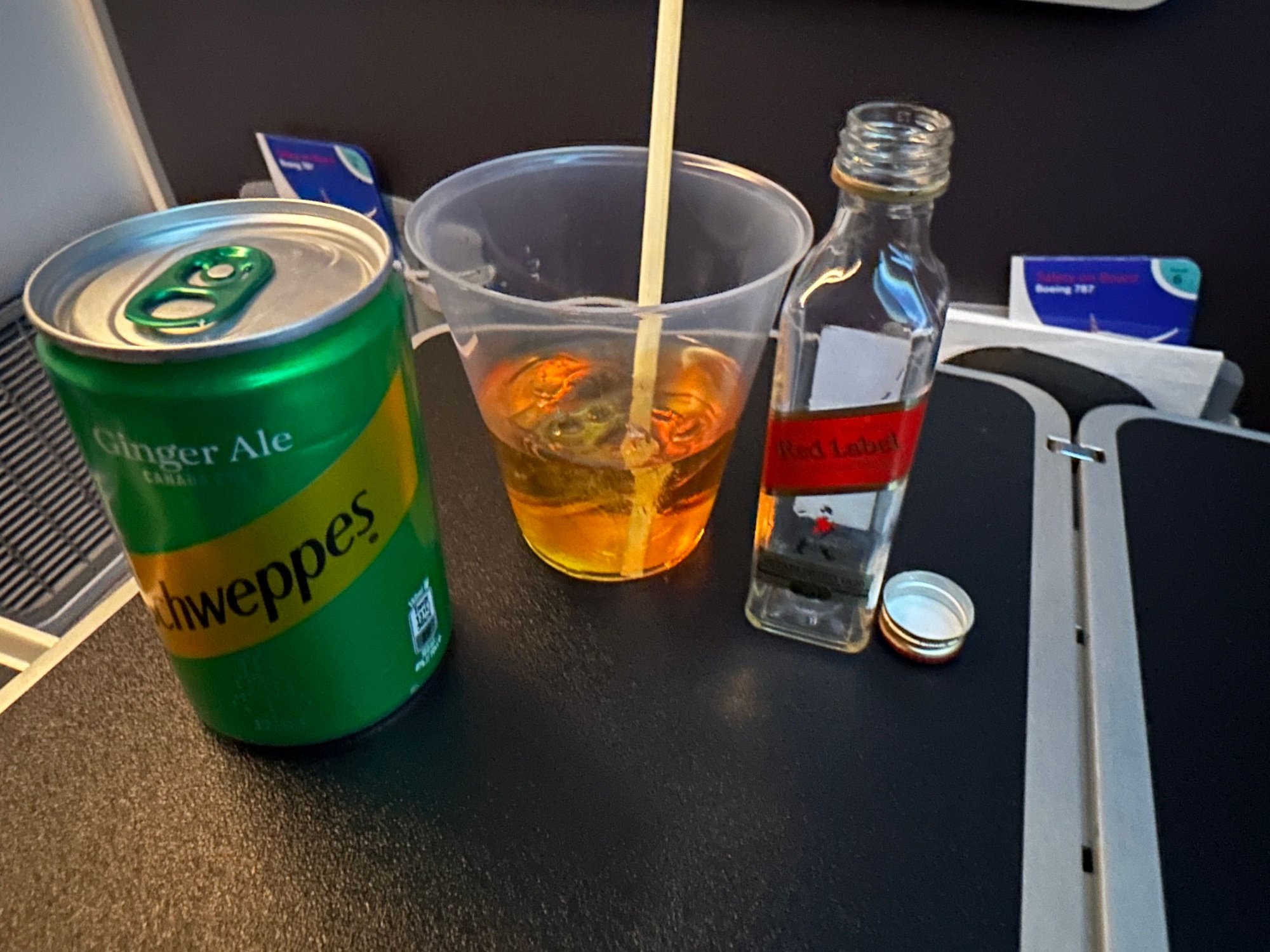 The drinks service commenced as soon as the seat belt light was out. It is a very reduced offering in WTP so I opted for a whisky and ginger, something I have not had for at least twenty years!