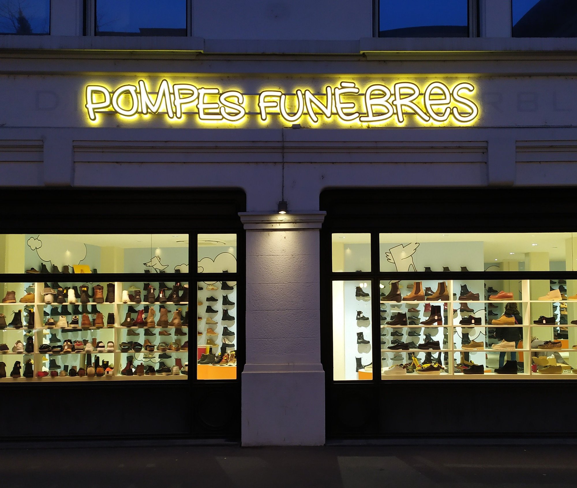 This fashionable shoe shop in the Flon district of Lausanne has a funny name, the equivalent of "funeral directors" in English