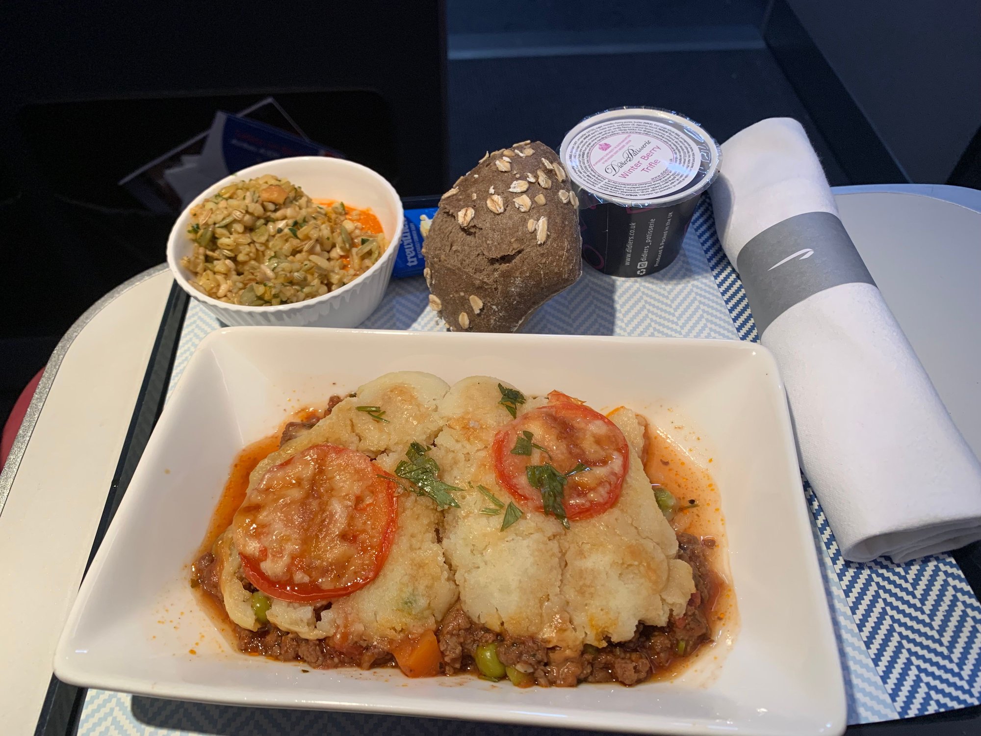 This flight was rather amazing for two things. Firstly, we had exactly the same meal on the ALC-LGW last Tuesday. No complaints from me. I had Cottage Pie and doused it with Worcestershire Sauce. (One day someone will explain to me why it it is pronounced Worcester). The starter rejoices in the name of Ancient Grain salad. Maybe they get them from a museum? The crew worked their socks off as we had 40 in Club. Top offs were abundant and we nearly ran out of Champagne. That fate worse than death was averted and my pearls did not need to be clutched. My husband had a Burger in the LGW Flounge and I intend to write to BA why Gatwick is so better catered in its Flounge than Heathrow. There were no Bagels or Currry. Maybe that’s all they know how to cook?