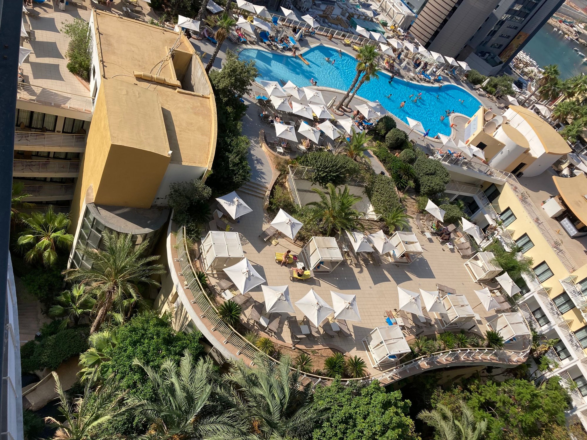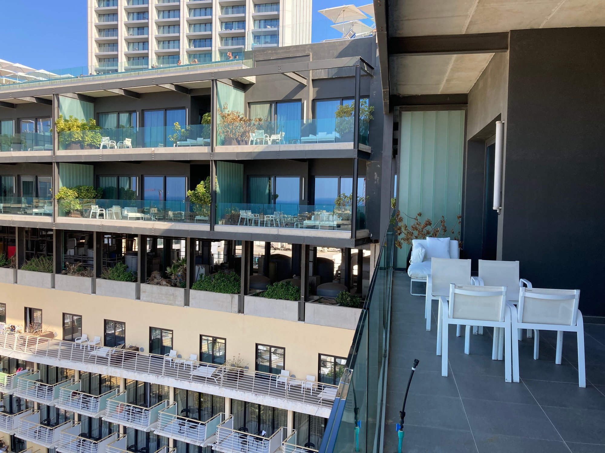 As S/O is of the ginger blond reddish hairy type and weaker against the sun, we asked in advance for the level 17 suites as the balconies are covered to protect from the direct sun. For those worshipping the sun, i would recommend to go for the suites on level 18, the more open top allows for direct sunbathing on one's own terrace. I did spot persons thinking of the safety of going au naturel....