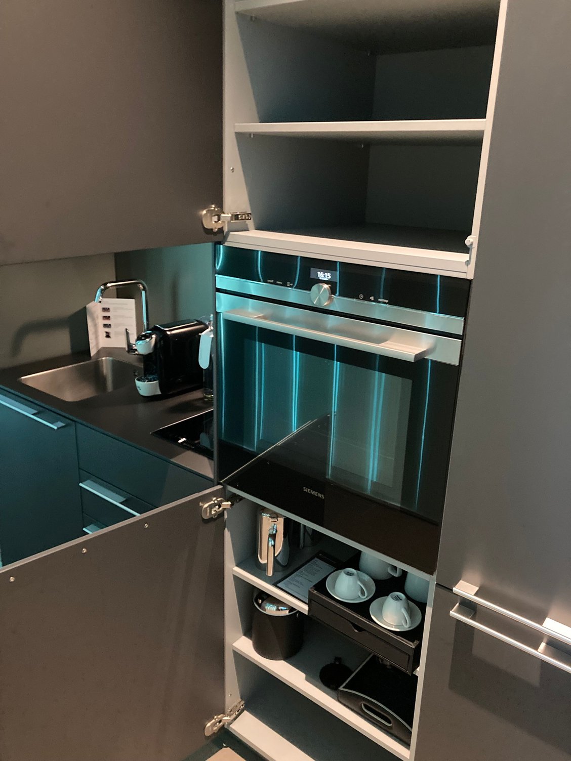 - has its own kitchen: oven / microwave combi + large fridge with big freezer