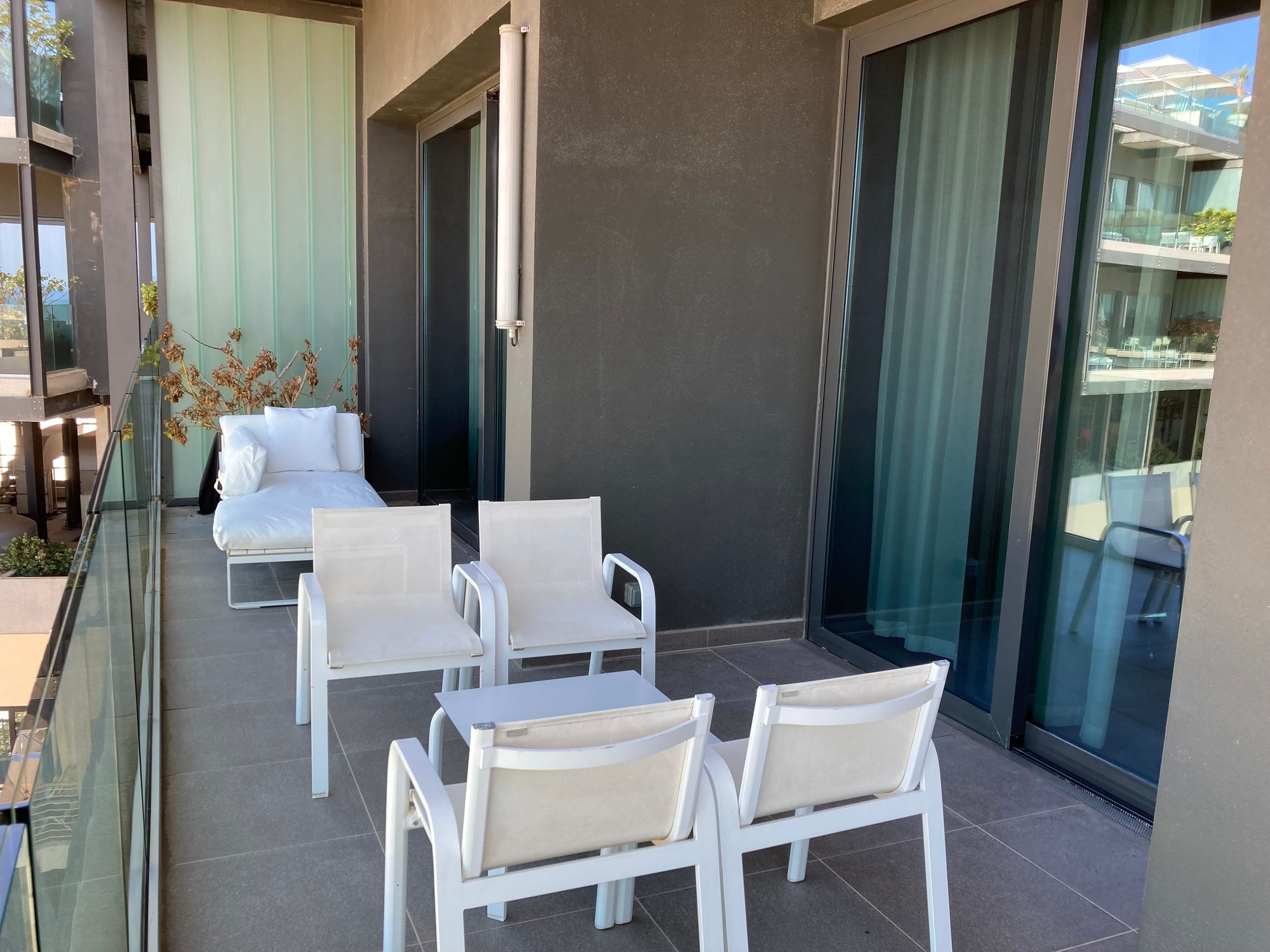 - balcony has 4 chairs + low table and a fainting sofa